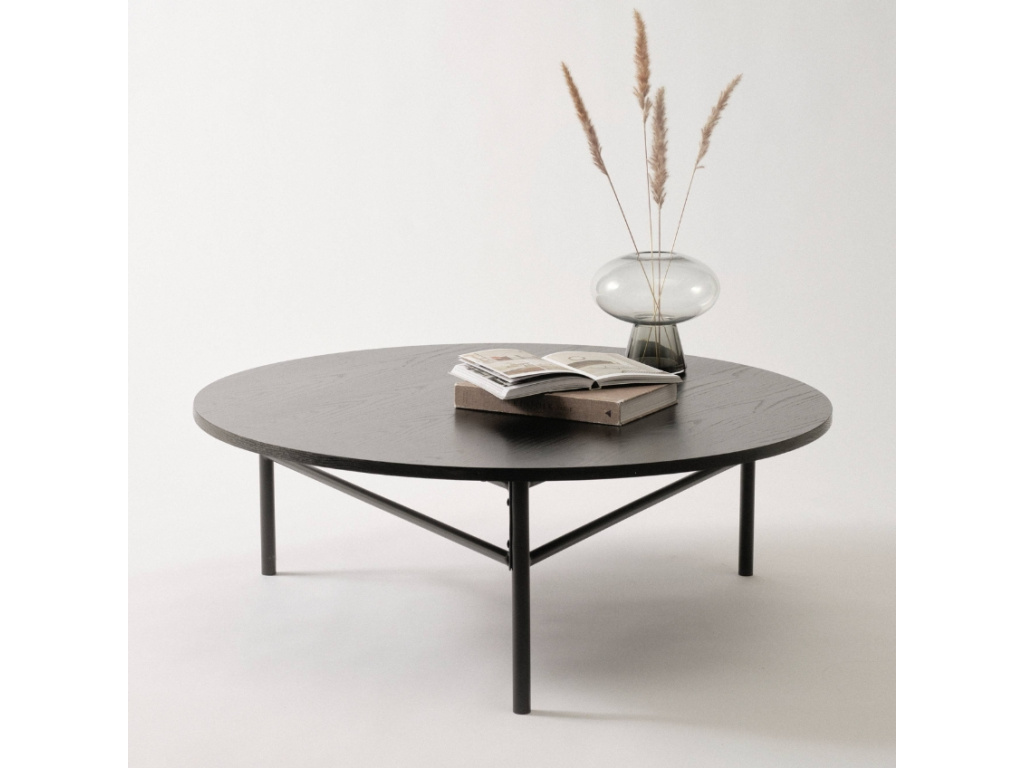 Konferenční stolek VALLEY je elegantní kombinací robustní dřevěné desky a jednoduché podnože, která zaujme na první pohled. Kulatý tvar přinese do interiéru harmonii a vytvoří přirozený středobod vašeho obývacího pokoje. Díky svému nadčasovému designu se snadno sladí s různými styly, od moderního minimalismu po útulný skandinávský styl. Povrchová úprava zajišťuje odolnost proti opotřebení, zatímco prostorná deska poskytuje dostatek místa pro dekorace, knihy nebo šálky kávy.
