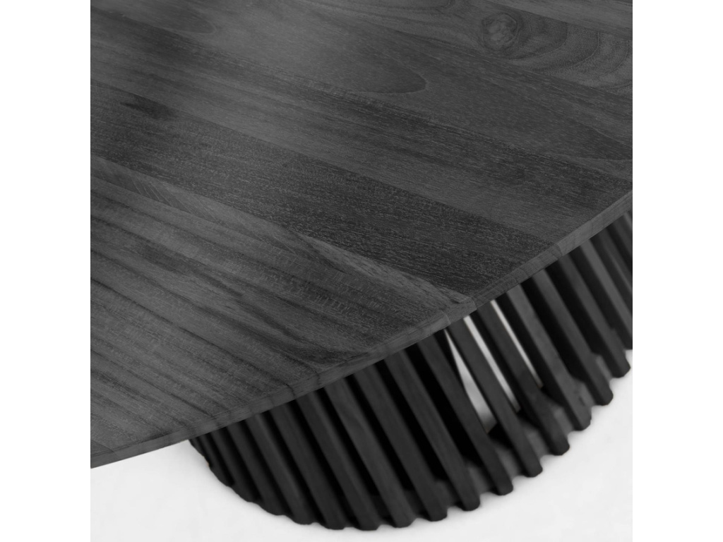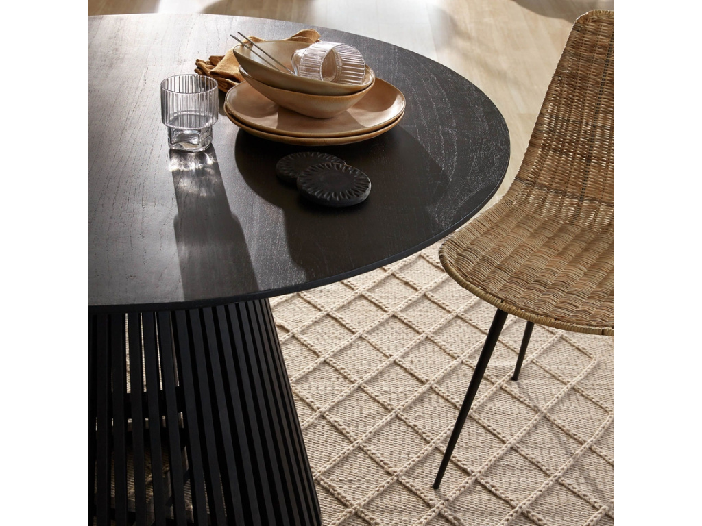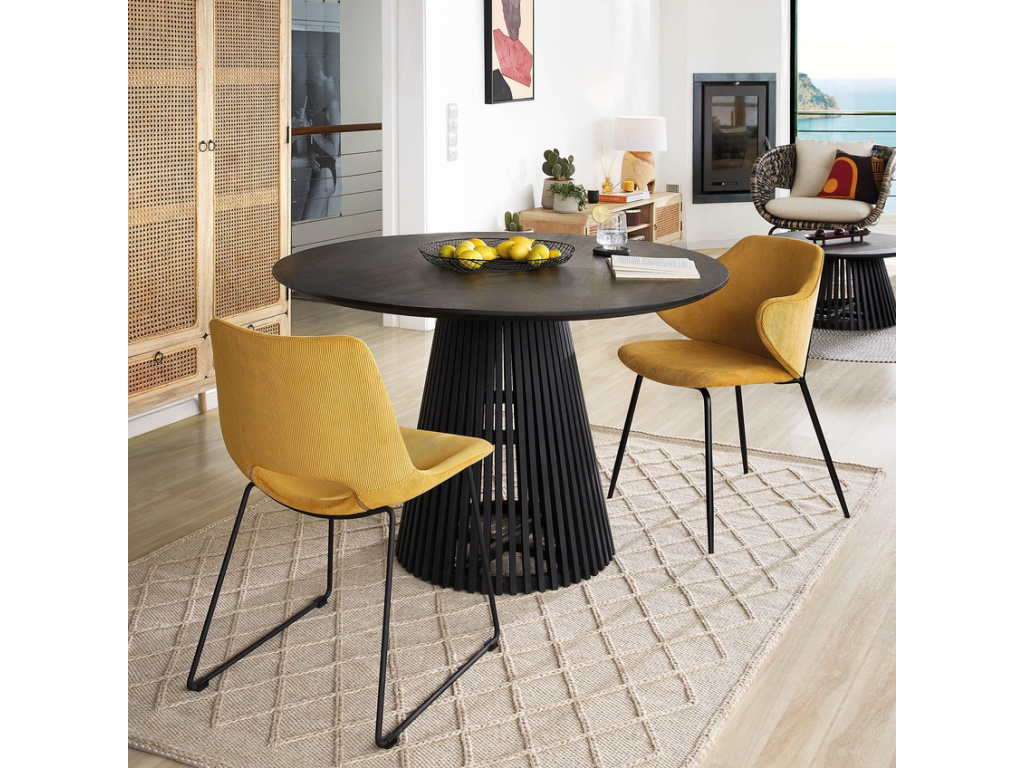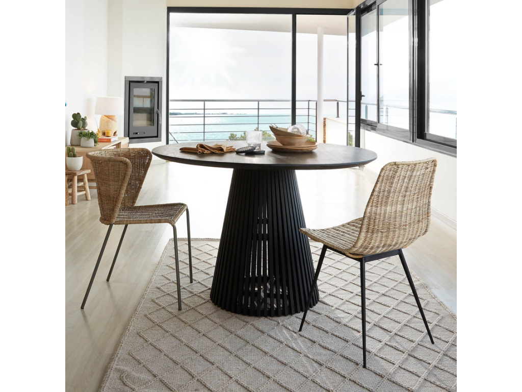 Kulatý jídelní stůl Kave Home Jeanette je vyroben z cedrového dřeva s důrazem na kvalitu a přírodní materiály. Příjemný černý tón i atraktivní vzhled stolu slibují, že se stane dominantou každého prostoru. Zajímavá strukturovaná podnož zaručuje stabilitu a proto je stůl Jeanette výbornou volbou do každého vkusně zařízeného exteriéru, např. na terasu či do krytého zahradního posezení.