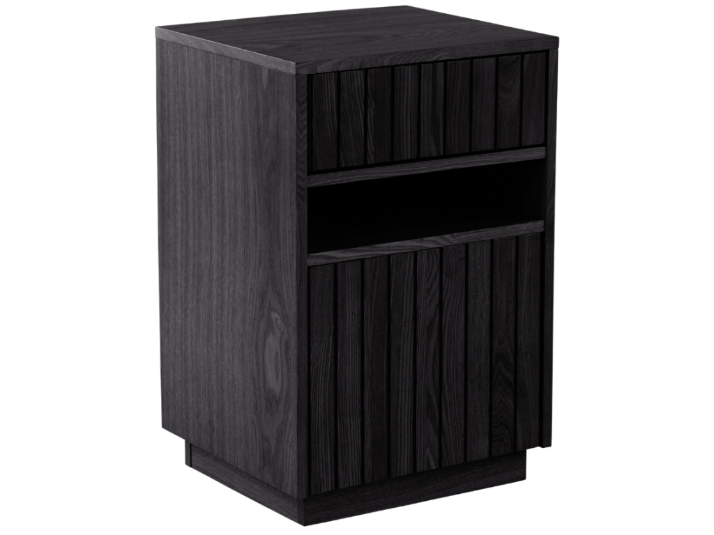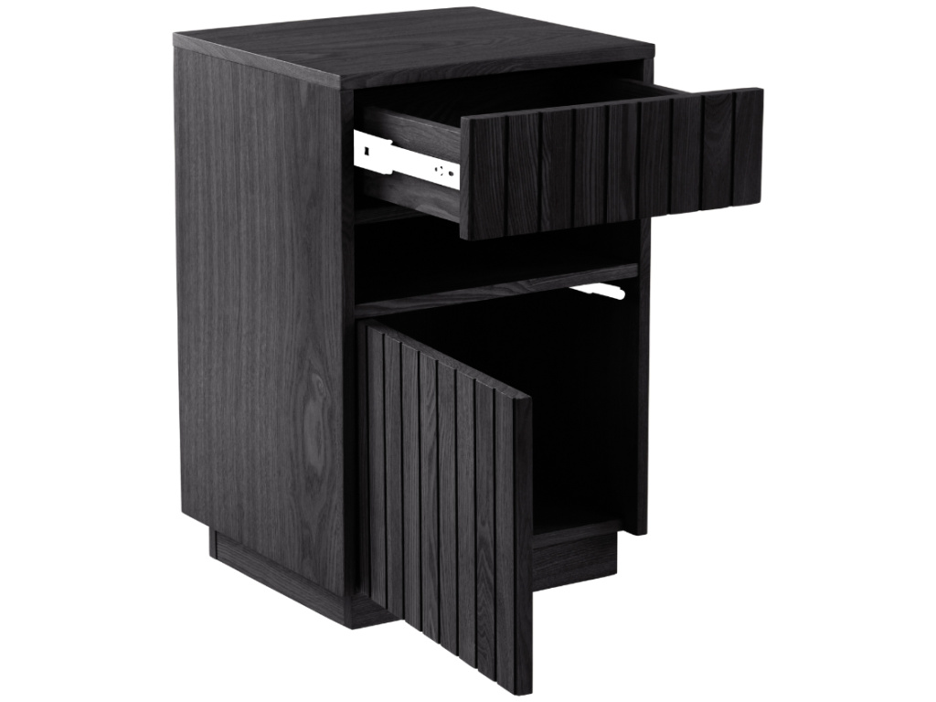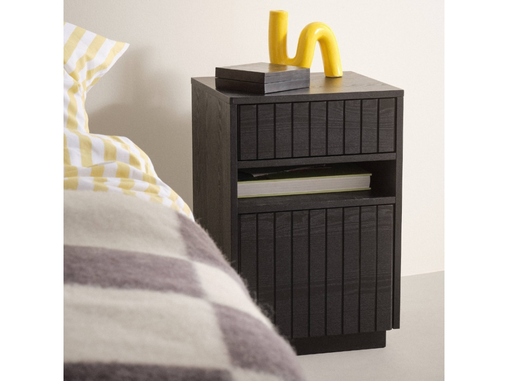 Elegantní, funkční a promyšlený do posledního detailu. Noční stolek EIRA v sobě spojuje moderní minimalismus s jemným retro nádechem, který si okamžitě získá vaši pozornost. Je vyroben z kvalitního MDF s jasanovou dýhou, které společně přinesou do ložnice přírodní texturu a nadčasovou eleganci. Čisté linie bez úchytek doplňuje praktické push-to-open otevírání, které dává vyniknout minimalistické siluetě. Praktičnost doplňuje volitelné zavěšení dvířek na pravou nebo levou stranu, což umožňuje umístění stolku po obou stranách postele. EIRA je noční stolek, který si ve vaší ložnici zaslouží čestné místo.