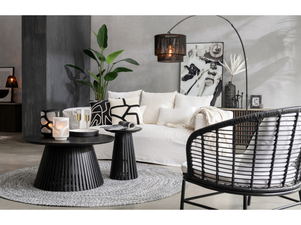 Originální odkládací stolek Vincenzo od značky J-line si zamilujete. Stane se stylovým a praktickým nábytkem pro odložení šálku kávy nebo knihy. Stolek ale může sloužit také jako podstavec pro květinu a jiné dekorace. Slušet mu to bude v obývacím pokoji, ložnici i v předsíni. Vincenzo je vyroben z mangového dřeva v černém provedení. Díky atraktivní podnoži se stane dominantou jakéhokoliv interiéru. Doporučujeme kombinovat tuto designovku i s konferenčním stolkem ze stejné řady.