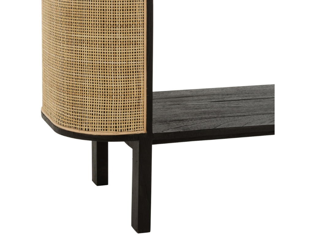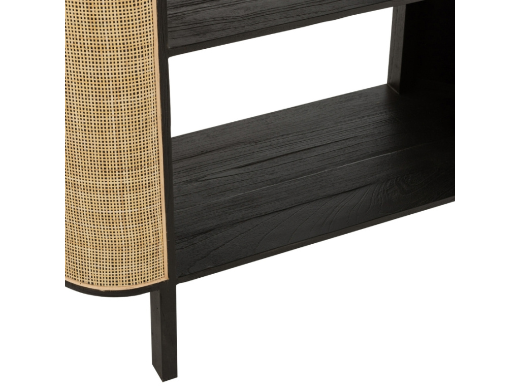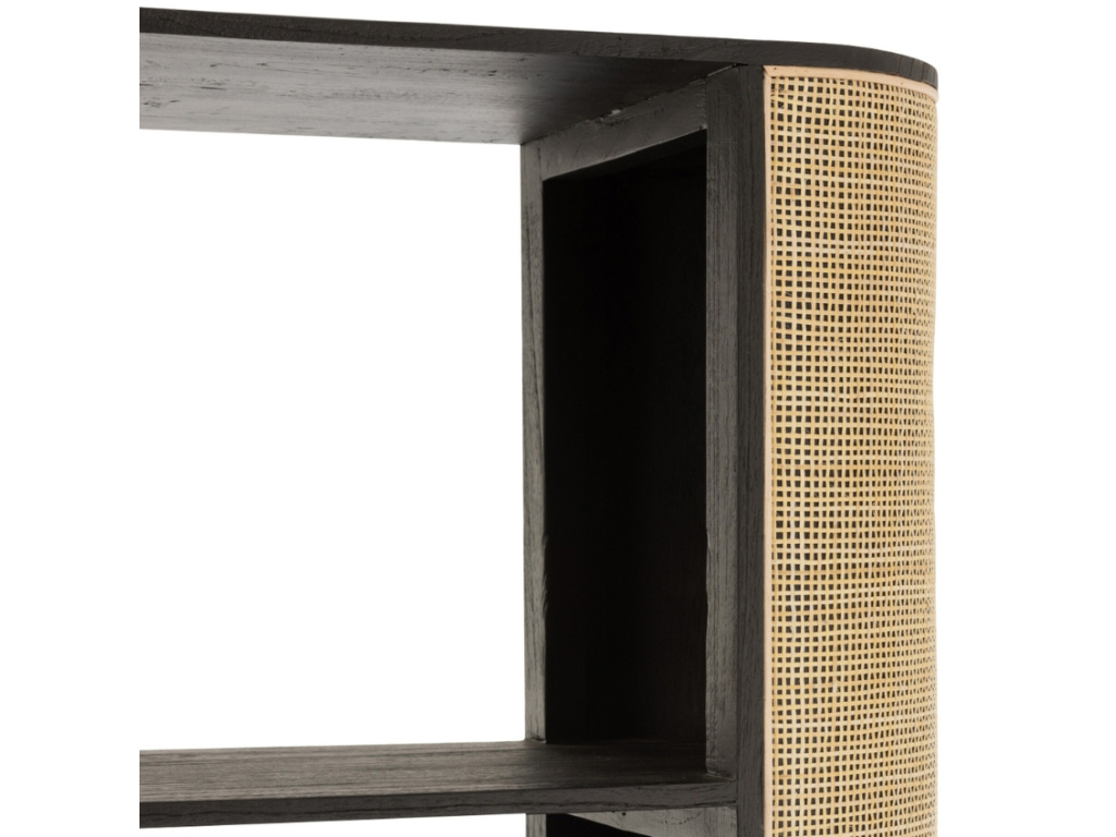 To chciČerný dřevěný regál J-line Meldo 190 x 100 cm s ratanovým výpletem