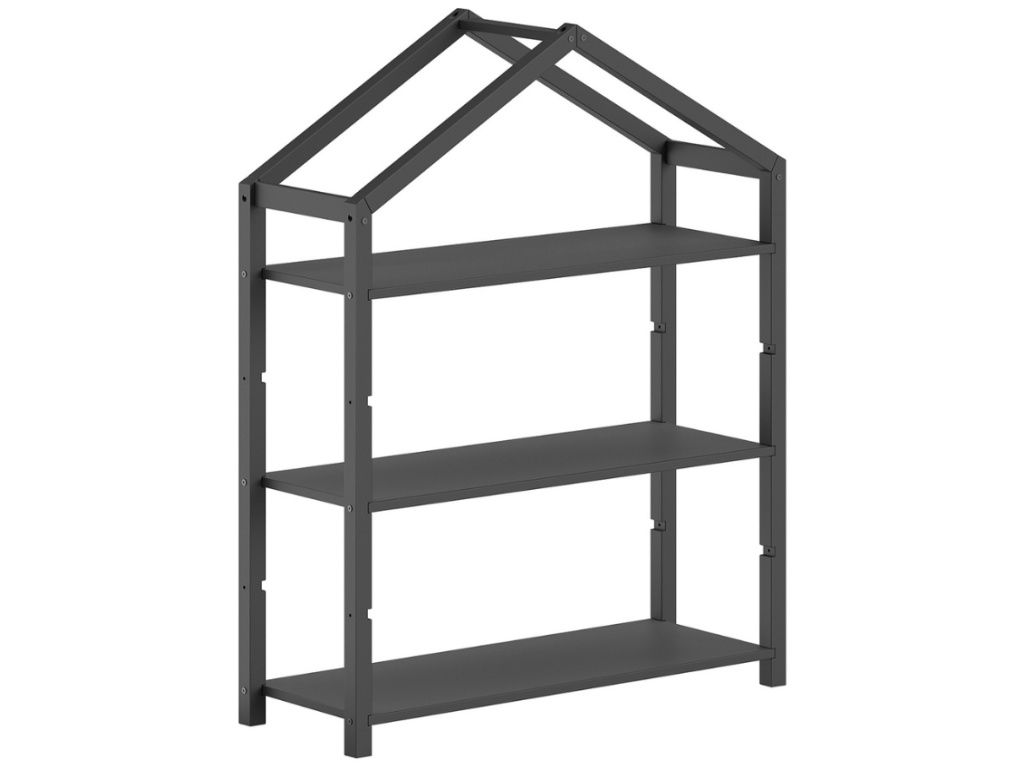 Dřevěný regál Forrest v černé lakované úpravě je ideální pro vystavení knížek, hraček i dekorací v dětském pokoji. Díky originálnímu tvaru domečku vnese do místnosti hravost a podpoří kreativní náladu, a jeho čistý, minimalistický vzhled se snadno kombinuje s ostatními doplňky i nábytkem. Regál je dostupný ve třech barevných variantách.
