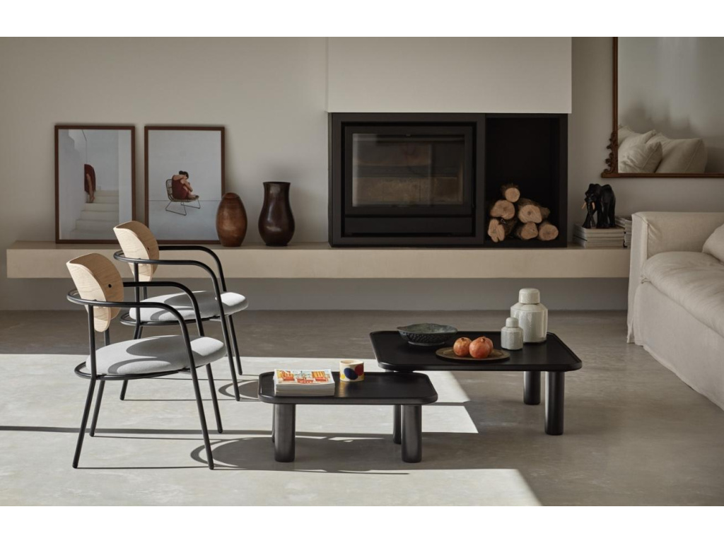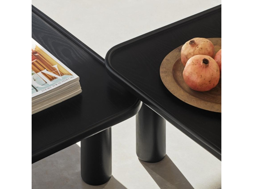 Set konferenčních stolků Nest od značky Teulat vyniká svou jednoduchostí. Zaoblené detaily zdůrazňují přírodní použité materiály a lakované dřevo v černé barvě dodává na čisté eleganci. Nohy jsou vyrobeny z masivního dřeva a doplňuje je dýhovaná deska z MDF, díky kterému je velice odolná a snadno se čistí. Snídaně, káva, či pouhý odpočinek při posezení u stolků Nest se stanou vaší oblíbenou chvílí.