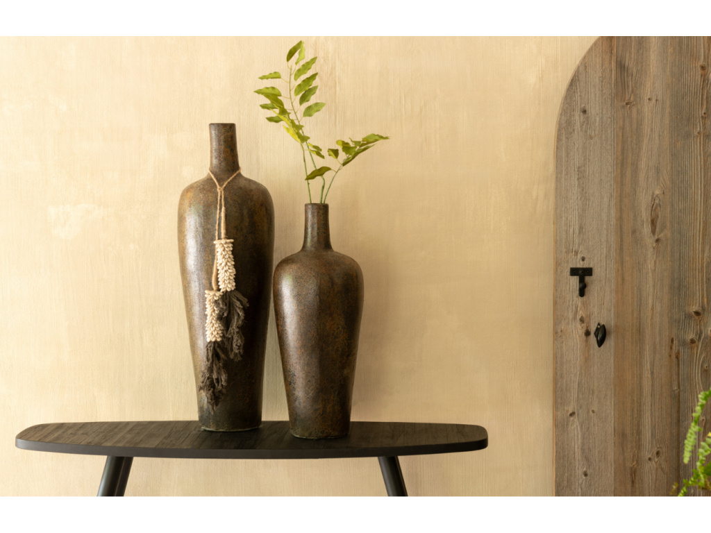 Představujeme vám toaletní stolek Takke od značky J-line. Bude perfektním kouskem do předsíní, vstupních hal nebo ložnic. Jeho deska je vyrobena z černého teakového dřeva a podepřena elegantní kovovou podnoží, která se postará o dokonalou stabilitu. Skvěle zapadne do většiny minimalistických a industriálních interiérů. Využijte stolek pro vystavení vašich oblíbených dekorací, nebo o něj opřete zrcadlo a vytvořte si pak zákoutí pro líčení. Stolek Tekke je součástí produktové série nesoucí stejnojmenný název – zkompletujte celou kolekci!