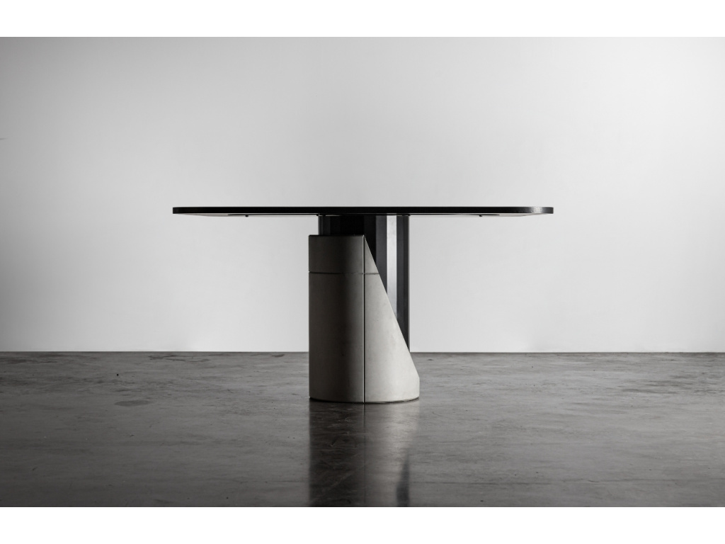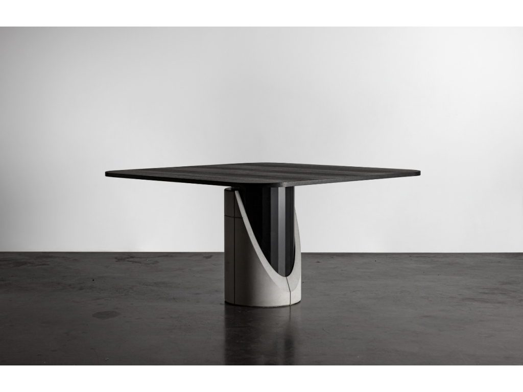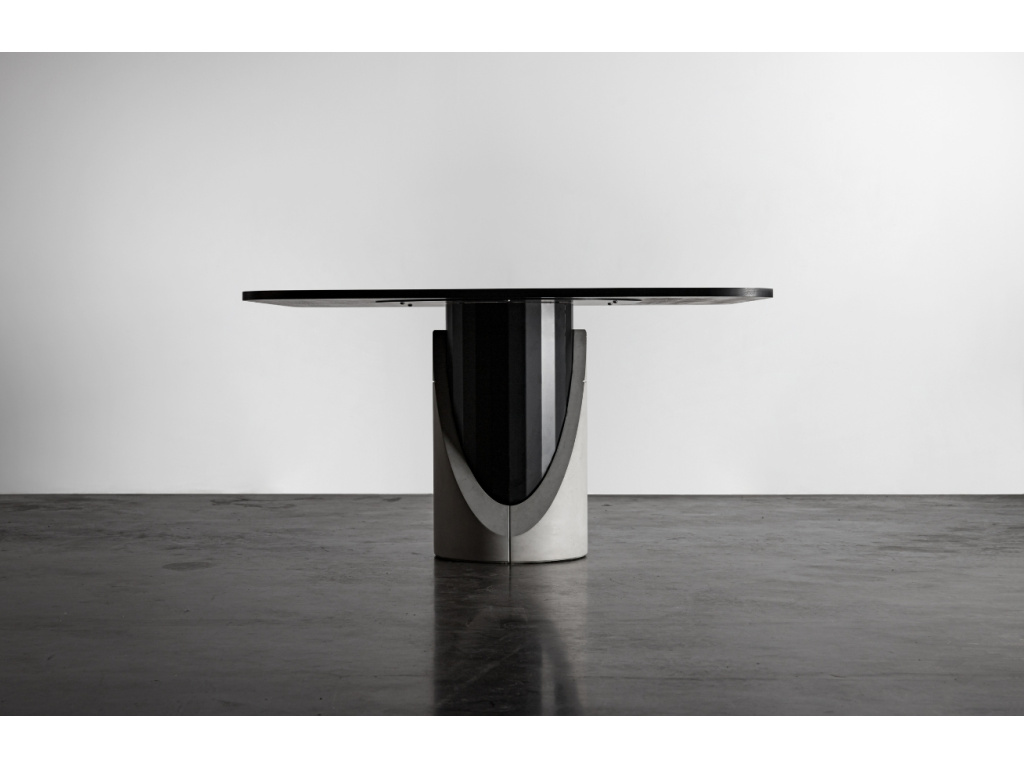 Designér Bertrand Jayr přichází se sérií jídelních stolů Sharp, ve které představuje atraktivní symbiózu mezi černě lakovanou dubovou dýhou, betonem a kovem. Prostorný oválný stůl má podnož v podobě betonové skořepiny odhalující černou kovovou hřídel, která je ozvláštněna jemnými fazetami. Tento atraktivní designový kousek rozhodně nepřehlédnete – pro vaší jídelnu bude představovat opravdovou chloubu! Usadit se u něj může až 8 osob, takže se skvěle hodí i pro početnější rodiny a milovníky společných večeří s partou přátel nebo kolegů.