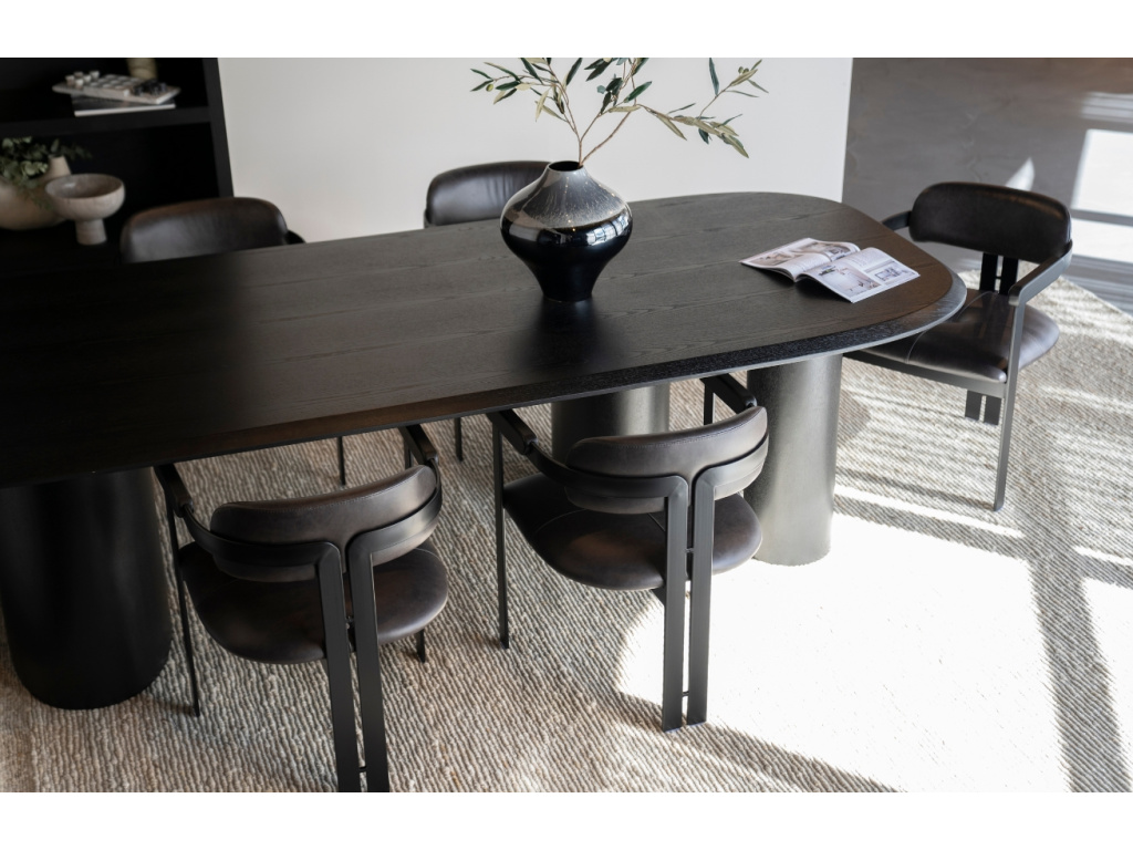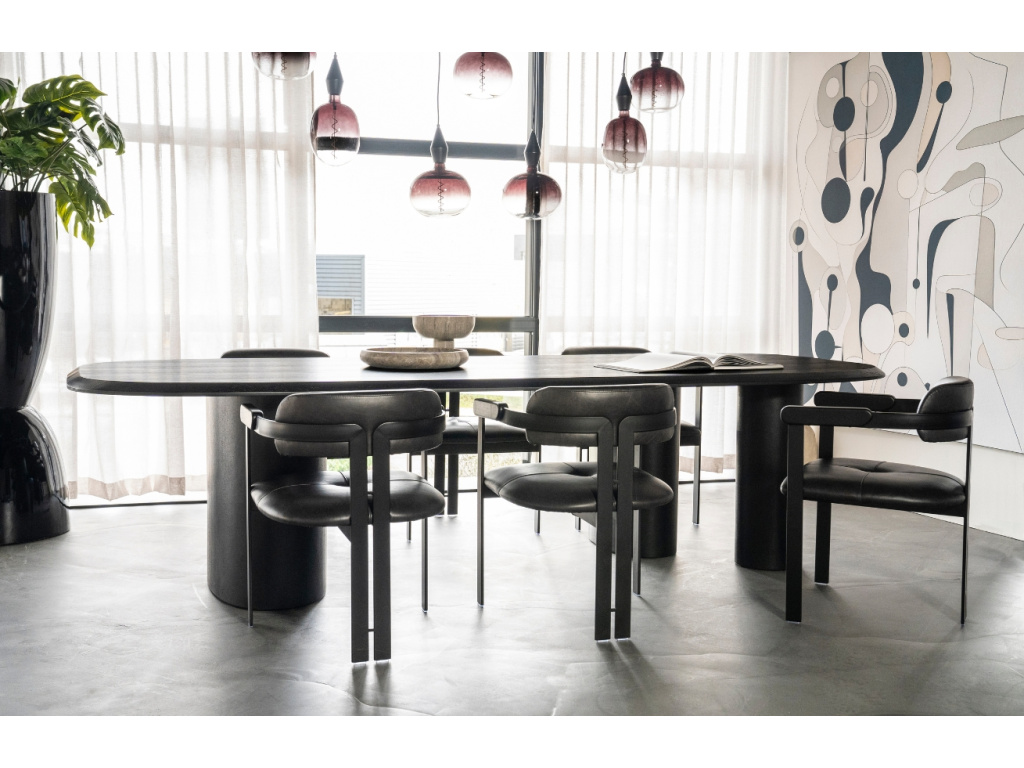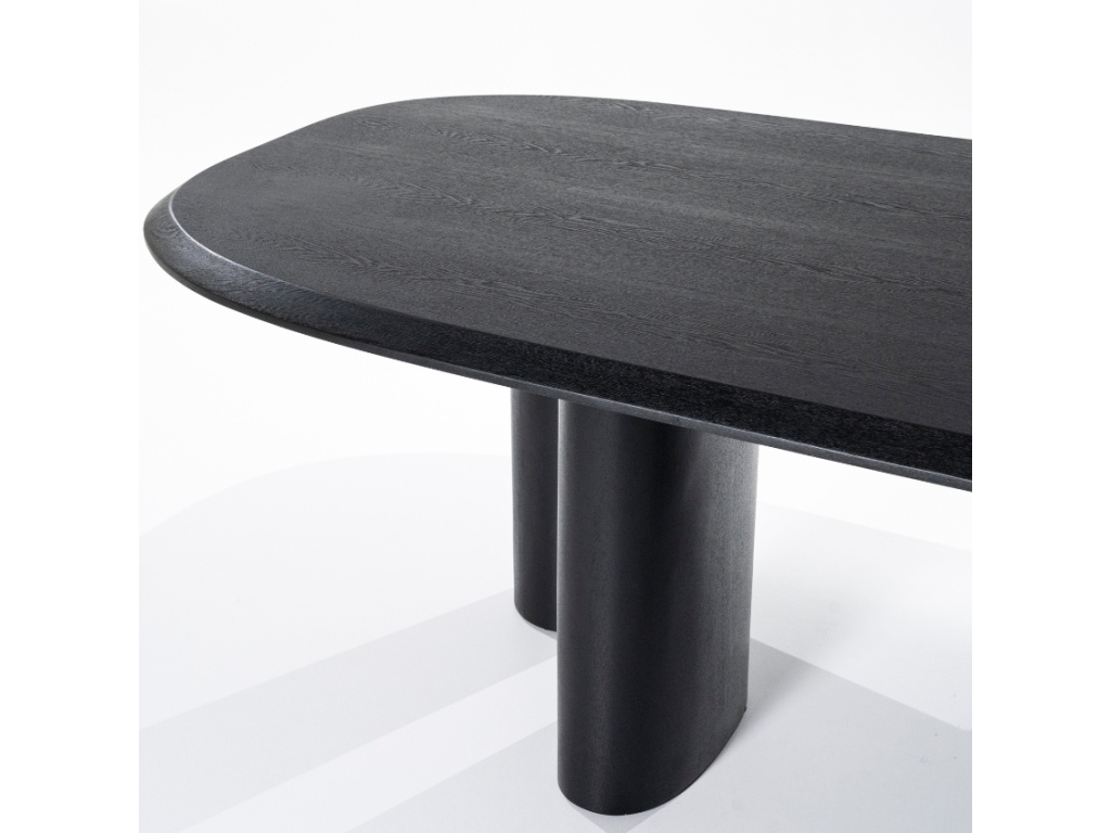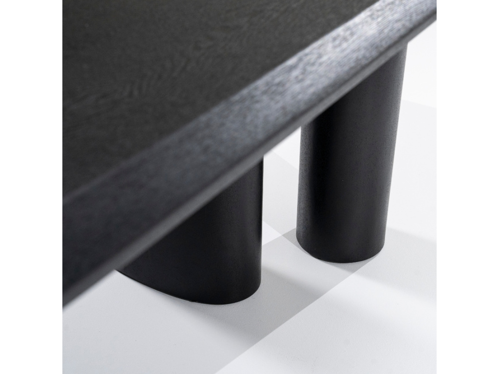 Série elegantních jídelních stolů a konferenčních stolků Walter od značky Eleonora je jako stvořena pro všechny milovníky organických tvarů. Atypicky tvarovaná deska i asymetrická podnož dodává nábytku jedinečný charakter, díky čemuž se stůl stane středobodem jakékoliv místnosti. Nábytek je vyrobený z dubové dýhy, lakovaný do elegantní černé barvy. Stůl skvěle vynikne s rovnými a geometrickými doplňky, se kterými bude vytvářet dokonalý kontrast. S dekoracemi a doplňky oblých tvarů se bude pro změnu příjemně doplňovat.