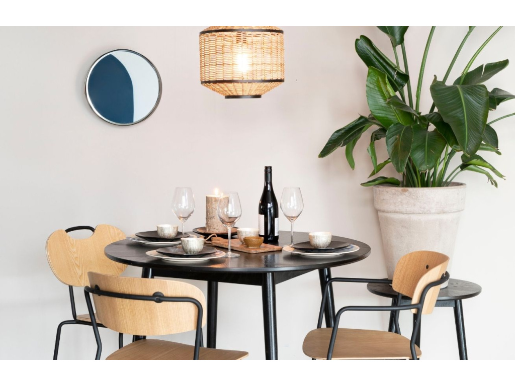 Černý jídelní stůl WLL FABIO s dubovou dýhovanou deskou a černě lakovanou dubovou podnoží je moderní, minimalisticky řešený stůl, který velmi dobře doplní interiéry s industriálními prvky i prvky moderního designu. Hledáte-li stylový jídelní stůl do jídelny či restaurace, je tento bistro stůl výbornou volbou.