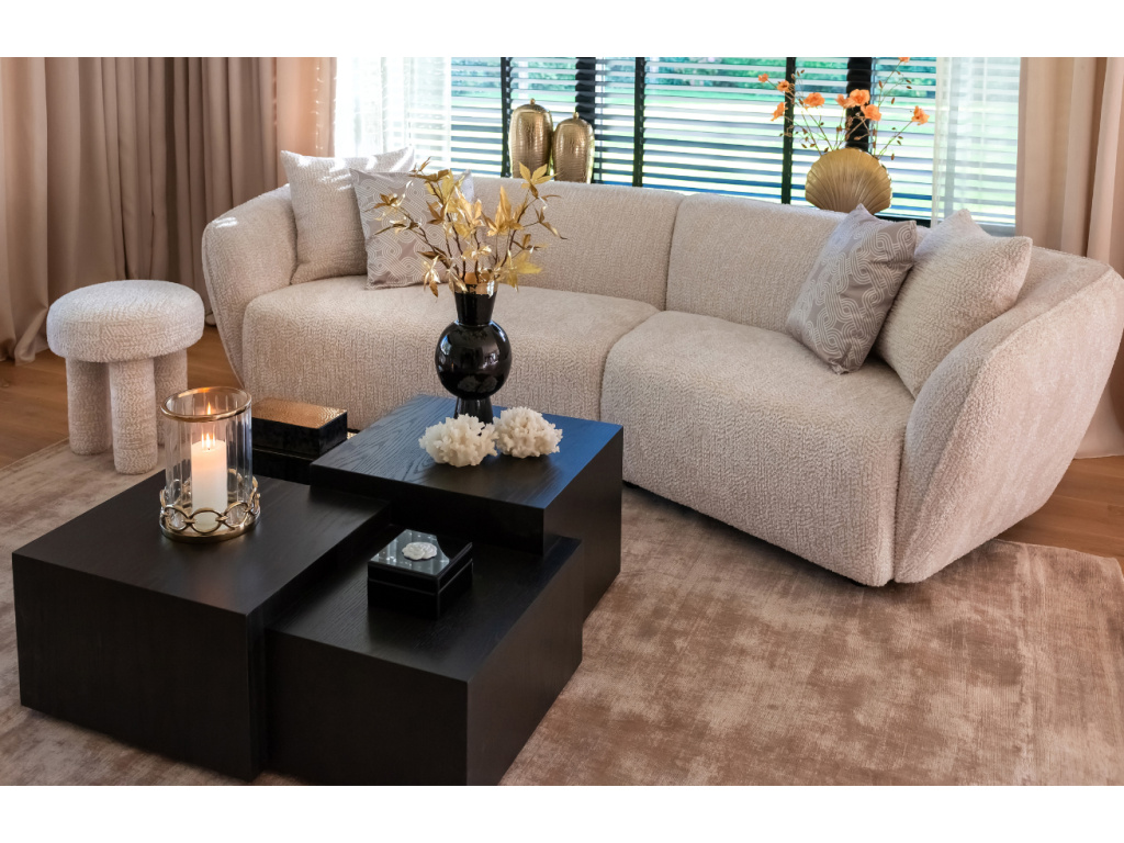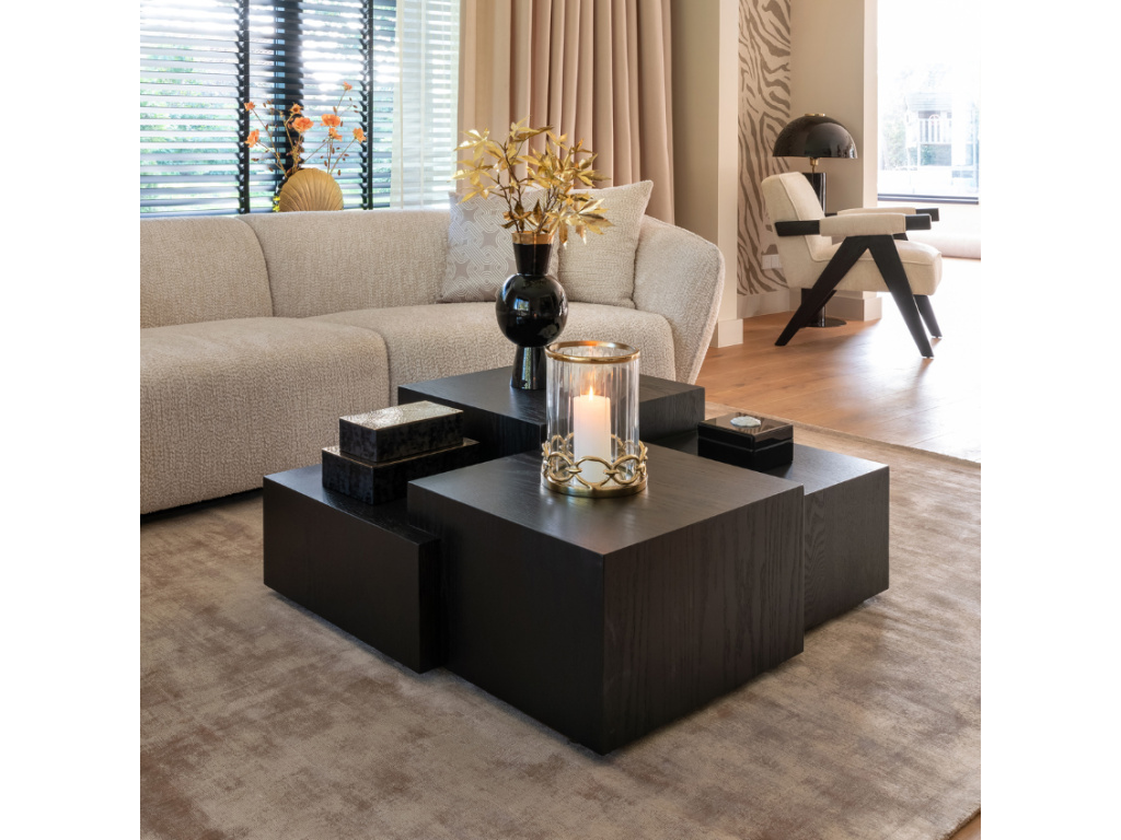 Konferenční stolek Lennox od značky Richmond je důkazem krásy a odvážného, atypického designu. Poslouží jako výrazný designový prvek v téměř jakémkoli interiéru. Lennox je vyroben z černé dubové dýhy a může se pochlubit robustním, hranatým tvarem, který upoutá pozornost každé návštěvy. Díky jedinečnému rozčtvrcenému designu, kde každý ze čtyř segmentů sahá do různých výšek, vytváří dynamickou estetiku a hraje si s hloubkou a perspektivou. Díky desce o rozměrech 100 x 100 cm poskytuje Lennox dostatek odkládací plochy na všechny potřebné dekorace a předměty, které chcete mít vždy po ruce. Dodejte svému interiéru styl s touto originální designovkou!
