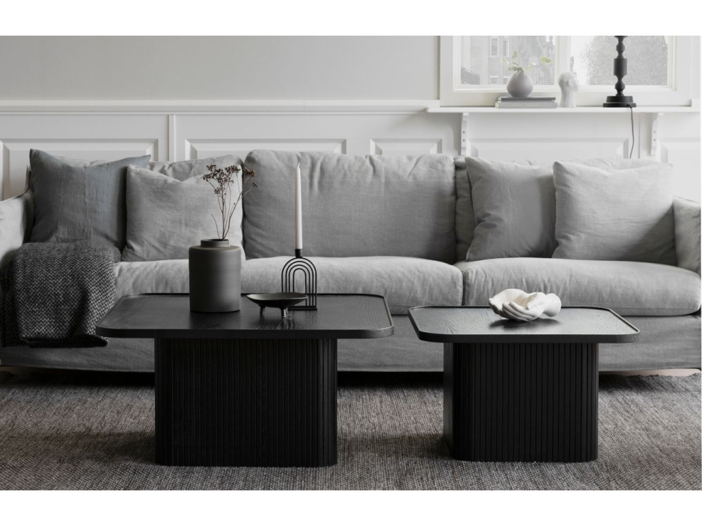 Konferenční stolek ROWICO SULLIVAN zaujme svým originálním skandinávským designem. Jeho deska se zaoblenými hranami je vyrobená z černé dubové dýhy a má lehce vyvýšený okraj, který zabraní spadnutí předmětů umístěných na stolku. Podnož stolku je také z dubové dýhy a je ozvláštněna jemnými drážkami, které vytvářejí stylové linie. Stolek je dostupný také v menší velikosti 60 cm.