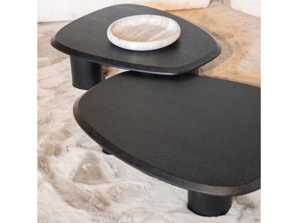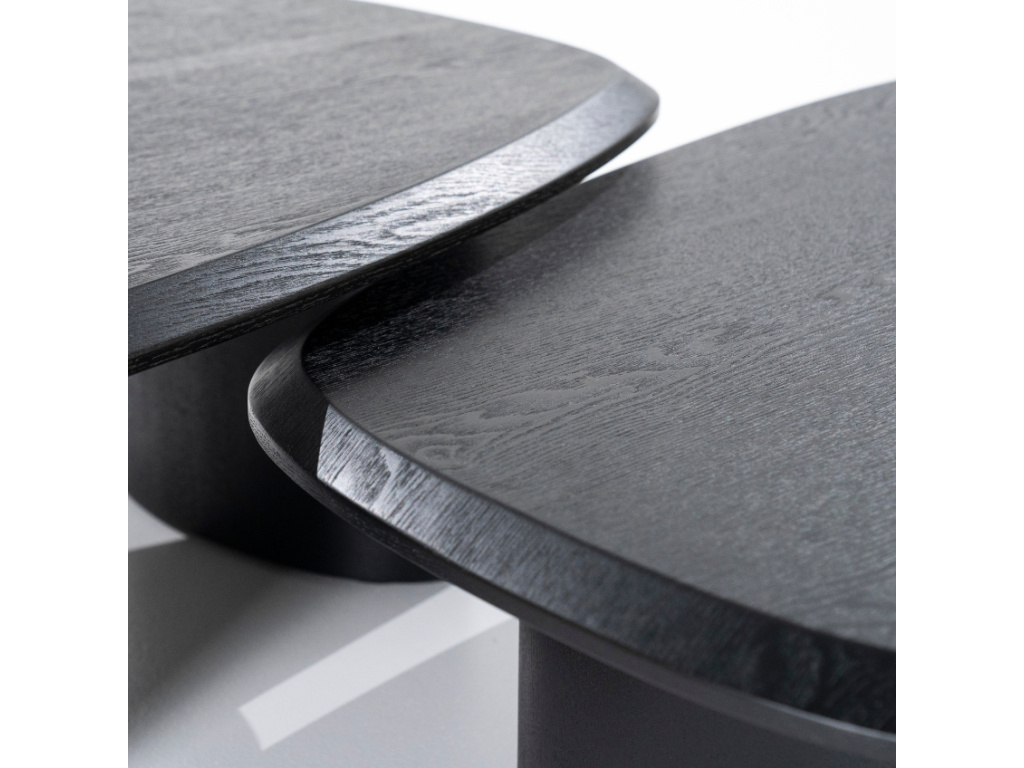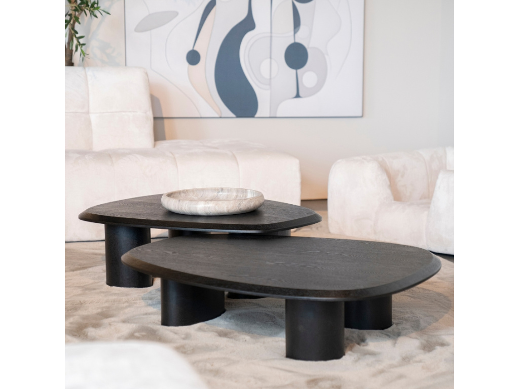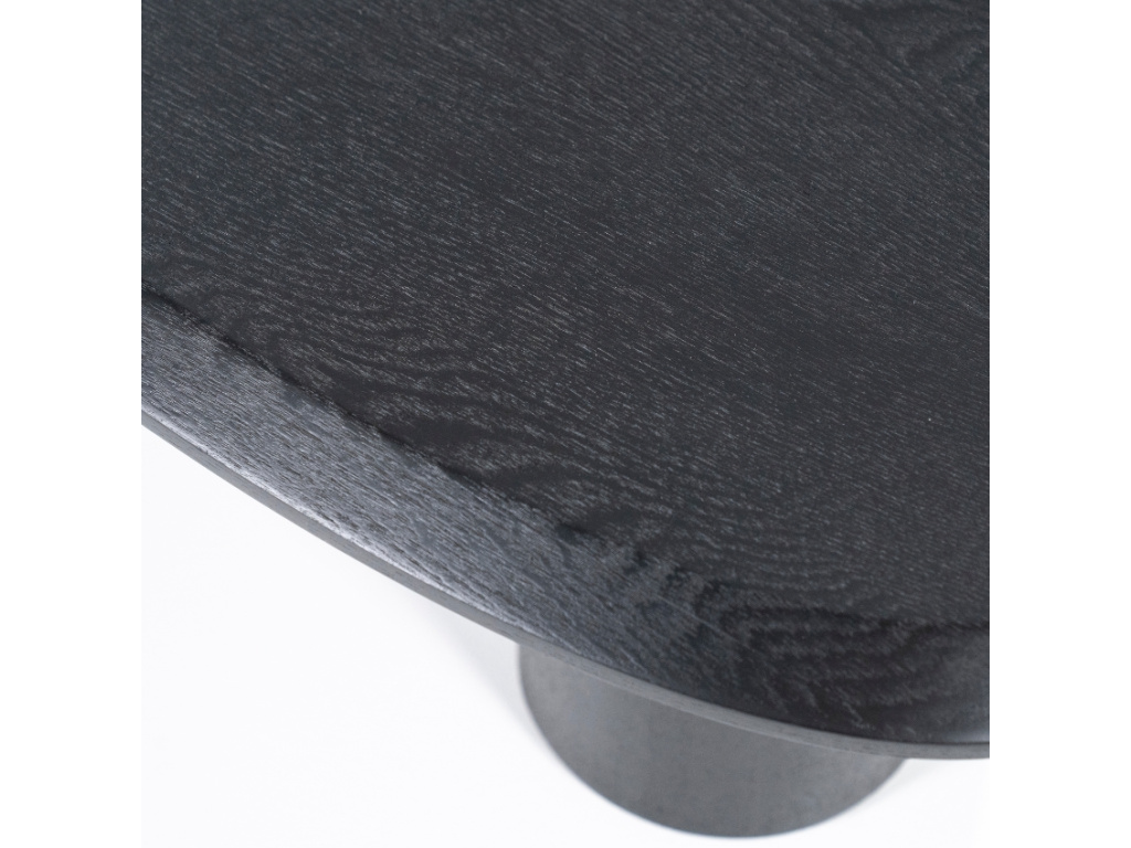 Série elegantních jídelních stolů a konferenčních stolků Walter od značky Eleonora je jako stvořena pro všechny milovníky organických tvarů. Atypicky tvarovaná deska i asymetrická podnož dodává nábytku jedinečný charakter, díky čemuž se stůl stane středobodem jakékoliv místnosti. Nábytek je vyrobený z dubové dýhy, lakovaný do elegantní černé barvy. Stolek skvěle vynikne s rovnými a geometrickými doplňky, se kterými bude vytvářet dokonalý kontrast. S dekoracemi a doplňky oblých tvarů se bude pro změnu příjemně doplňovat.