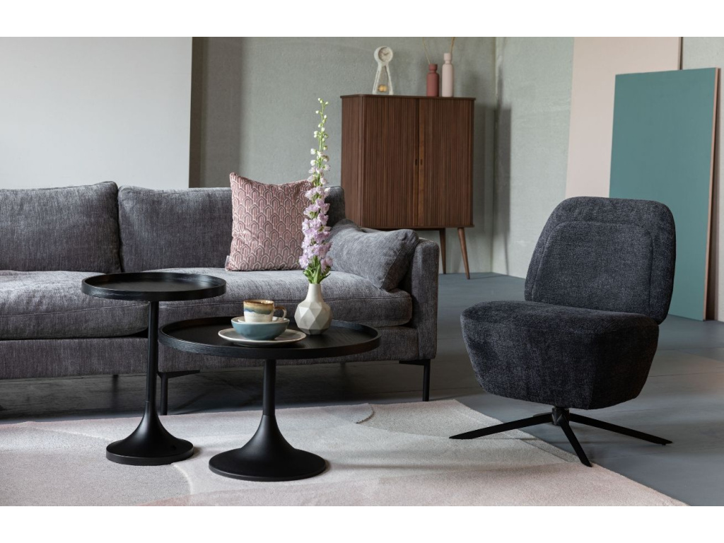 Elegantní tvary, kombinace přírodních materiálů a překrásné černé lakování jsou největšími přednostmi konferenčního stolku ZUIVER JASON. Deska stolku vyrobena z dřevovláknité desky je pokryta práškově lakovaným plátem z dubové dýhy obklopeným překližkovým rámem pro zamezení pádu odložených věcí. Velmi podstatnou součástí stolku Jason je mohutná ocelová podnož zabezpečující perfektní stabilitu a stylové propojení s deskou.