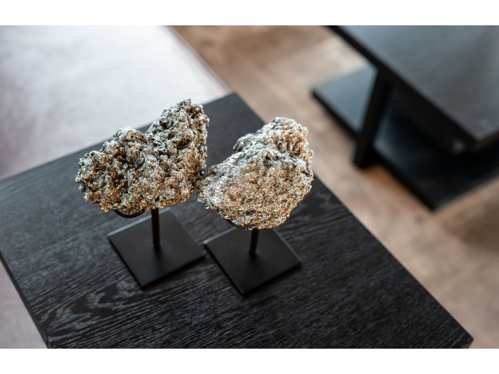 Odkládací stolek Oakura značky Richmond se díky své originálně tvarované podnoži skvěle hodí jako odkládací prostor k pohovce. Můžete jej pod ni částečně zasunout a užít si v jeho společnosti například šálek kávy. Milovníci drobných dekorací jej mohou využít k vystavení oblíbených kousků. Desku stolku tvoří dubová dýha černé barvy, která je doplněna lakovanou kovovou podnoží stejné barvy.