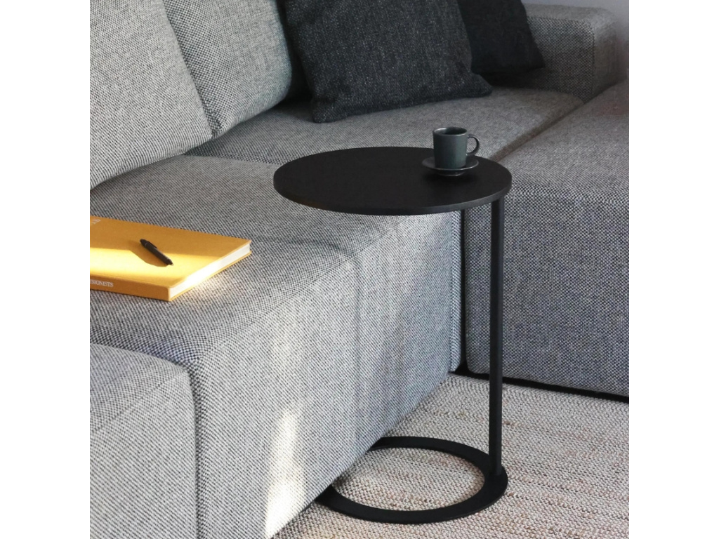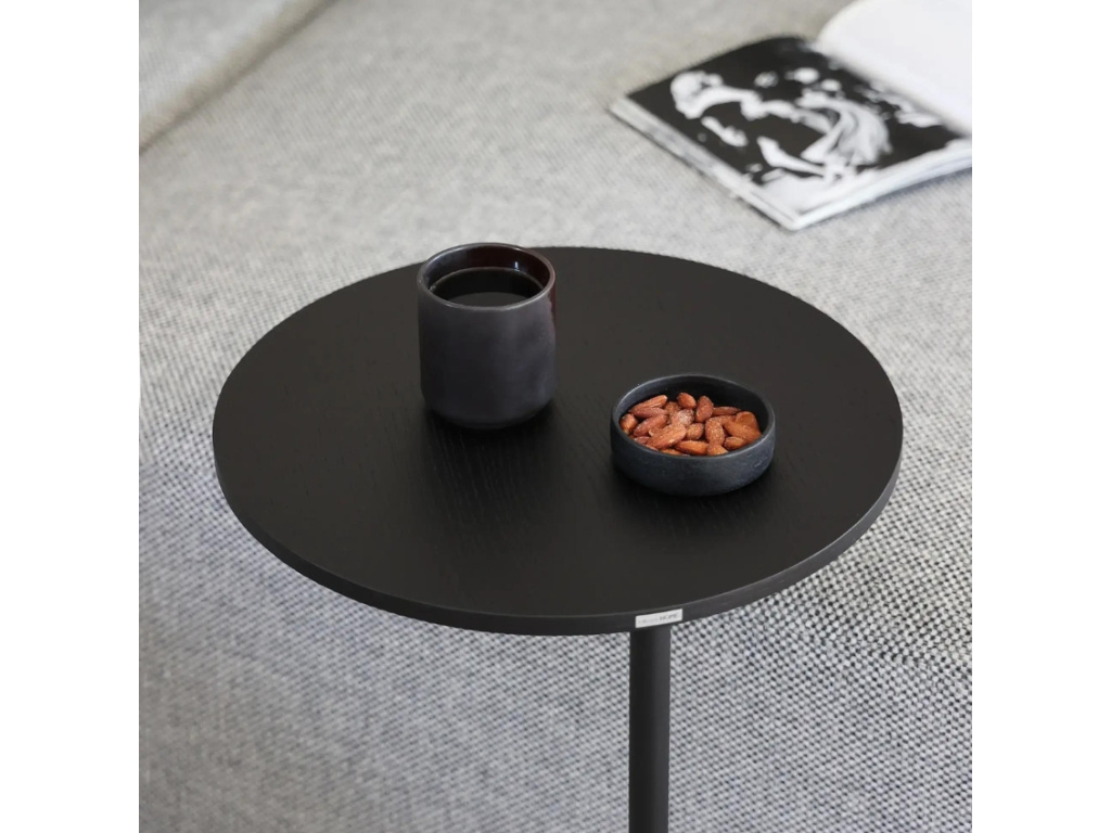 Odkládací stolek Teo bude praktickým doplňkem každého obývacího pokoje. Je tvořený kulatou deskou z černé dubové dýhy a štíhlou kovovou konstrukcí, díky které stolek snadno zasunete pod pohovku nebo křeslo. Budete tak mít po ruce odkládací prostor, který využijete třeba na kávu, čaj nebo drobné občerstvení. Díky neutrální černé barvě skvěle zapadne i do barevnějších interiérů, nejvíce slušet mu to bude v minimalistických a industriálních prostorech.