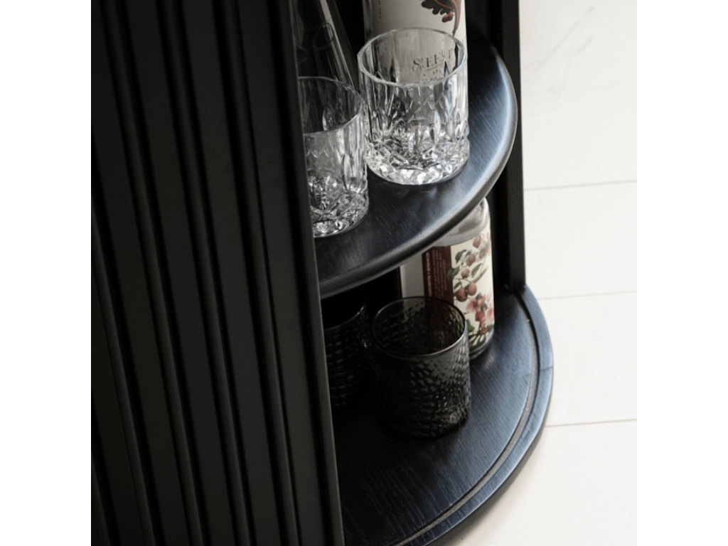 Odkládací stolek Siena od značky Unique Furniture dodá vaší ložnici či obývacímu pokoji na originalitě a jedinečnosti. Stolek je vyroben z dubového dřeva a dubové dýhy v černém provedení a nabízí úložný prostor v podobě čtyř polic ukrytých za posuvnými dvířky, která zaujmou stylovým motivem žebrování. V sérii Siena najdete více designově sladěných produktů, které se budou v interiéru skvěle doplňovat.