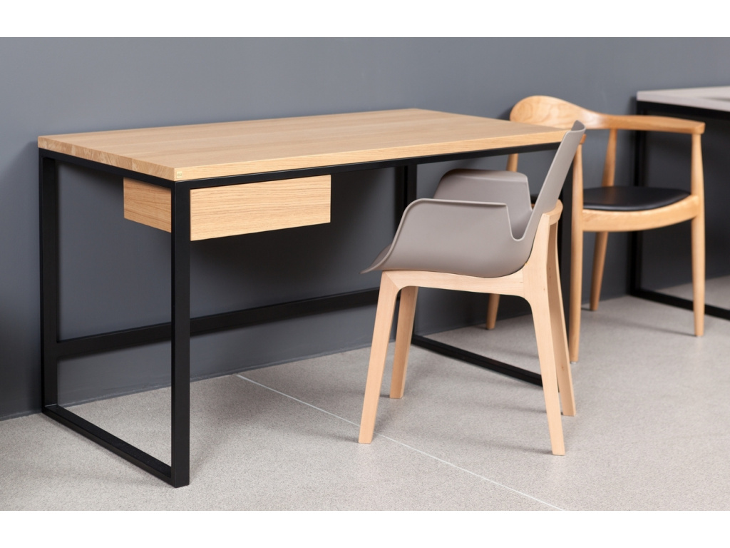 Stylový pracovní stůl Kai nabízí svěží design tradičních přírodních materiálů a praktický úložný prostor v podobě zásuvky. Podnož z lakovaného kovu doplňuje masivní dubová deska, která stolu zajišťuje pevnost a odolnost. Stůl se skvěle hodí do domácích pracoven.