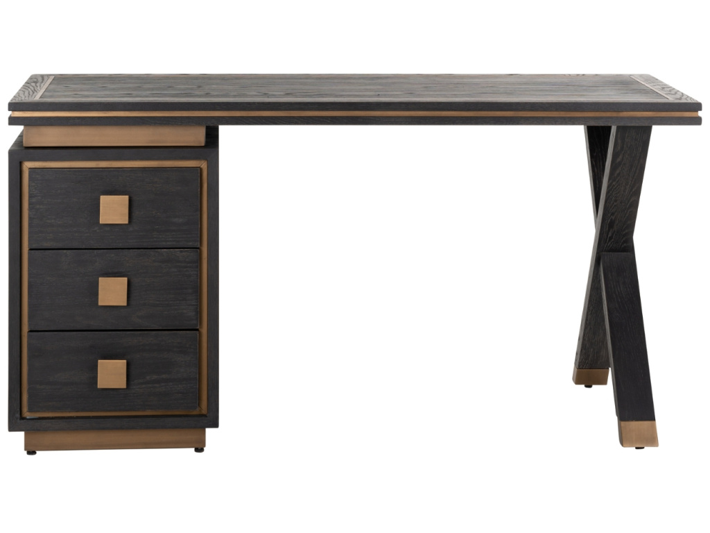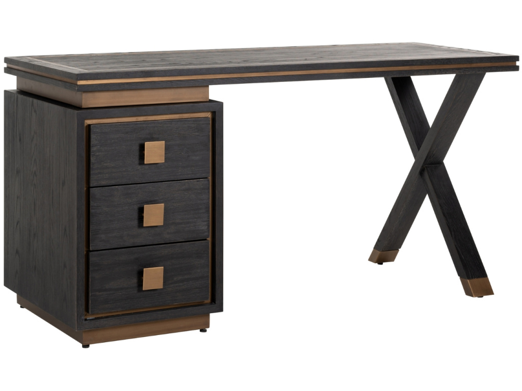 Hledáte stůl, který bude praktický a zároveň stylový? Ve vaší domácí pracovně zařízené v moderním, svěžím a nepříliš konvenčním stylu jistě zapadne pracovní stůl Hunter od značky Richmond. Tam, kde vládne dřevo a zlato, tam vládne elegance a osobitost. Stůl nabízí úložný prostor v podobě tří zásuvek, kterým na druhé straně kontrastuje zkřížená podnož. Hunter můžete doplnit také komodou nebo nádherným regálem ze stejné kolekce a sjednotit tak styl ve vašem moderním interiéru.