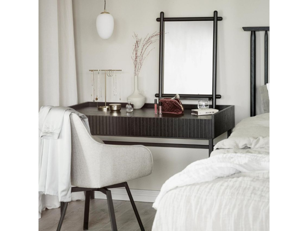 Pracovní stůl ROWICO HALIFAX dodá styl vaší domácí pracovně nebo ho můžete využít jako toaletní stolek ve vaší ložnici. Jednoduchý design stolu je ozvláštněn přední stranou zásuvek - na té najdete masivní dubové lišty, které stolu dodávají na eleganci. Praktický detail představuje vyvýšený okraj desky, díky kterému vše zůstane na svém místě. Doporučujeme jej doplnit dalšími produkty ze série.