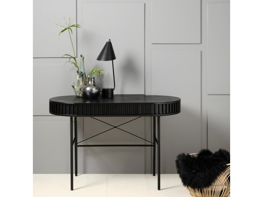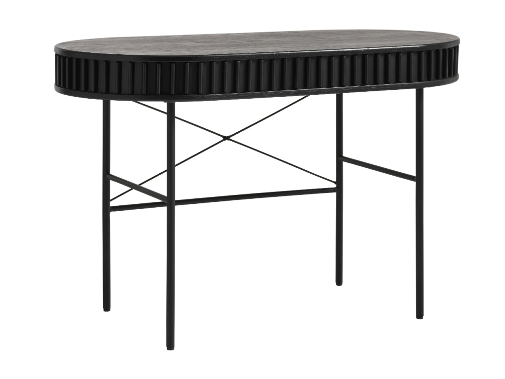 Hledáte-li funkční a elegantní stůl do vaší pracovny, je stůl Siena od značky Unique Furniture tou správnou volbou. Stolek je vyroben z dubového dřeva a dýhy v černém provedení, také disponuje úložným prostorem ukrytým za posuvnými dvířky, která zaujmou stylovým motivem žebrování. Celek doplňuje podnož z lakovaného kovu v černém odstínu. Originální pojetí stolku Siena ozvláštní interiér a upoutá na sebe veškeré pohledy. Můžete jej kombinovat s dalšími produkty z řady Siena.