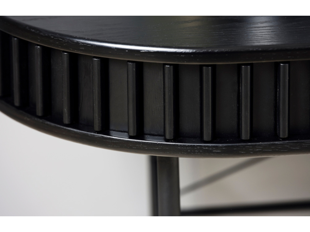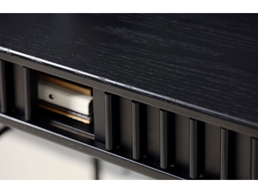 Hledáte-li funkční a elegantní stůl do vaší pracovny, je stůl Siena od značky Unique Furniture tou správnou volbou. Stolek je vyroben z dubového dřeva a dýhy v černém provedení, také disponuje úložným prostorem ukrytým za posuvnými dvířky, která zaujmou stylovým motivem žebrování. Celek doplňuje podnož z lakovaného kovu v černém odstínu. Originální pojetí stolku Siena ozvláštní interiér a upoutá na sebe veškeré pohledy. Můžete jej kombinovat s dalšími produkty z řady Siena.