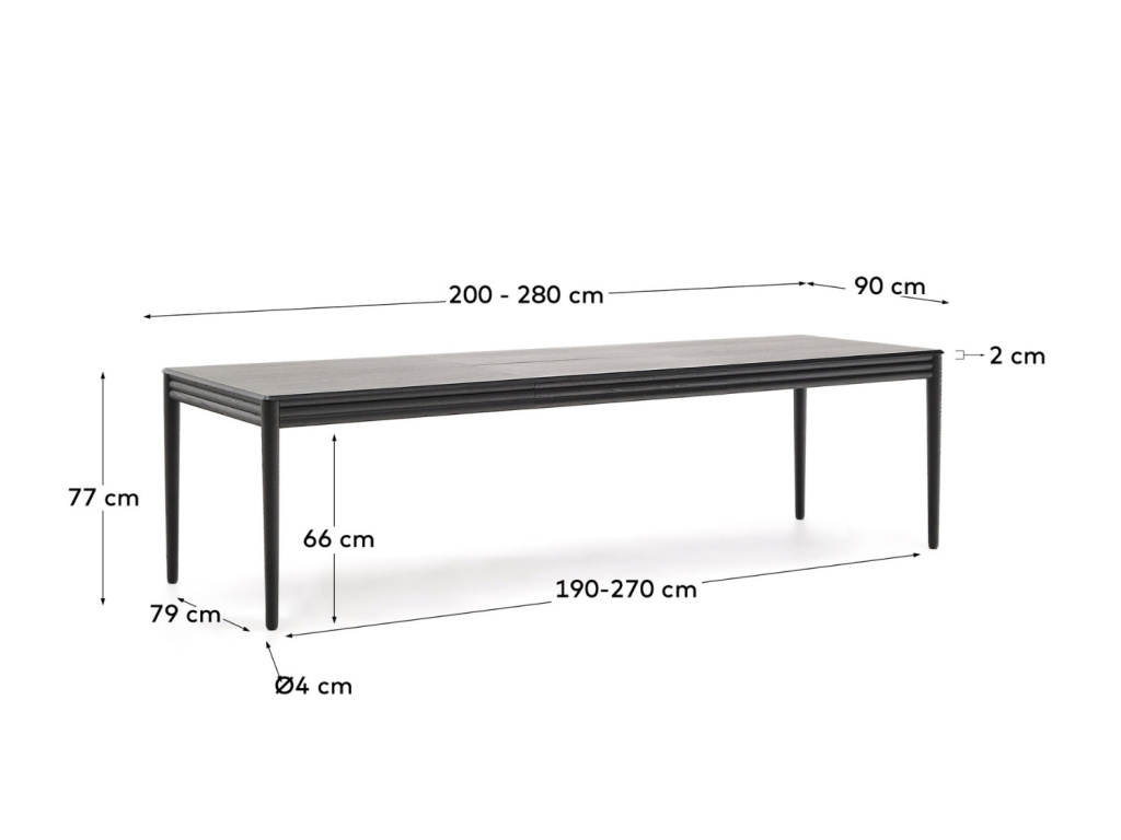 Černý dubový rozkládací jídelní stůl Kave Home Lenon 200-280 x 90 cm