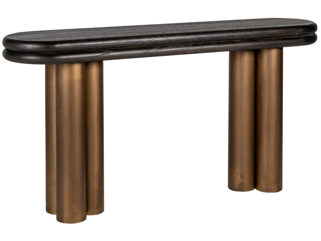 Originální toaletní stolek Richmond Macaron prostor zaručeně ozvláštní a přinese s sebou nádech elegance. Spojuje v sobě kovovou podnož měděné barvy a dvojitou desku z černě lakovaného dubového dřeva. Toto atraktivní spojení se jen tak neokouká a rozhodně nevyjde z módy! Dostupný je také jídelní či konferenční stůl ve stejném designu - společně se budou perfektně doplňovat.