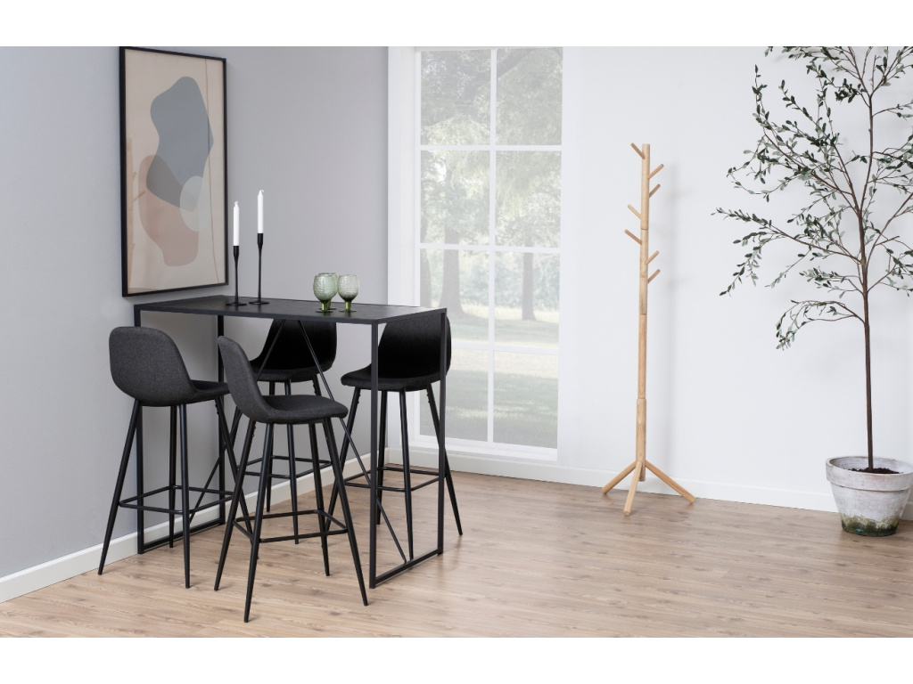 Vysoce moderní barový stůl Darila dodá interiéru na originalitě a jedinečnosti. Produkt má velmi zajímavě řešenou podnož, která je specifická kovovým provedením. Detail nedokončeného trojúhelníku podpoří celkový výraz stolu. Deska je vyrobená z melaminu v dekoru černého jasanu. Stačí jen pohodlné židle a můžete s chutí hostit návštěvy. Doporučujeme kombinaci více prvků z řady Darila.