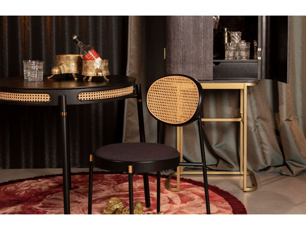 Jedinečný jídelní stůl BOLD MONKEY DON'T STOP THE WEBBING vás zaujme na první pohled neobvyklým spojením více materiálů. Deska je vyrobena z jasanové dýhy, kterou skvěle doladí ratanové detaily a kovová podnož. Stůl se díky odolnosti skvěle hodí je židle vhodná do domácího prostředí, a především do komerčních prostor, jako jsou hotely, přijímací haly, kavárny apod.