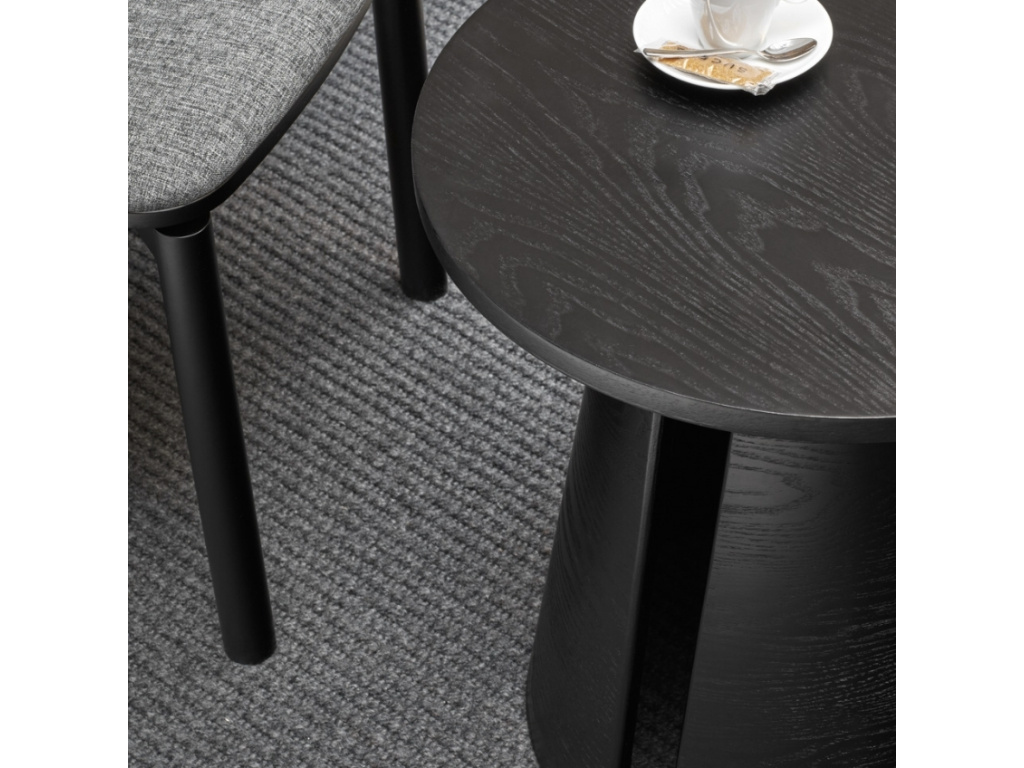 Designový odkládací stolek Teulat Cep zaujme na první pohled svým minimalistickým designem. Deska a podnož jsou vyrobené z černě lakované jasanové dýhy, což stolku dodává na atraktivitě a originalitě. Díky symetričnosti je zdůrazněna ušlechtilost dřeva a pečlivé detaily této kolekce. Stolek se skvěle hodí do moderních interiérů, předsíní a obývacích pokojů, kde je doplní o nadčasový kousek nábytku. Zkombinujte tento kousek také s ostatními produkty ze stejnojmenné řady a získejte do svého interiéru dokonalou souhru stylového nábytku.