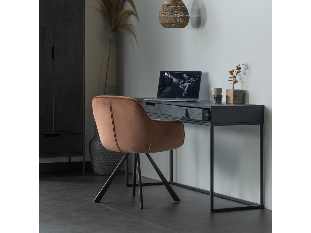 Pracovní stůl Frax je osobitým kusem nábytku. Je vyrobený z černě lakovaného masivního jasanového dřeva a má lakovanou kovovou podnož černé barvy. Skříň nabízí velký úložný prostor a díky jejímu designu si ho zamilují všichni, kteří ocení jednoduchost, čistotu provedení a také použití vysoce kvalitních materiálů. Minimalismus pracovního stolu Frax bude nejlépe vynikat v jednoduše a vzdušně zařízeném interiéru, kterému dodá stylovost a nadčasový prvek.