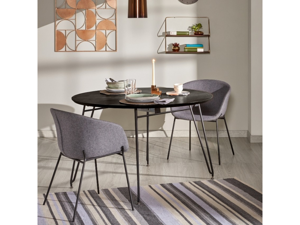 Stylový kulatý rozkládací stůl Kave Home Milian je ukázkovým příkladem spojení moderna a extravagance. Deska z jasanového dřeva a černě lakovaná kovová podnož vytváří spojení, díky kterému je tento stůl absolutním vítězem mezi unikáty. Stůl se hodí pro každého, kdo se nebojí být originální. Jeho velkou výhodou je možnost jej kdykoliv snadno rozložit - budete tak moci pohostit i početnější návštěvy.