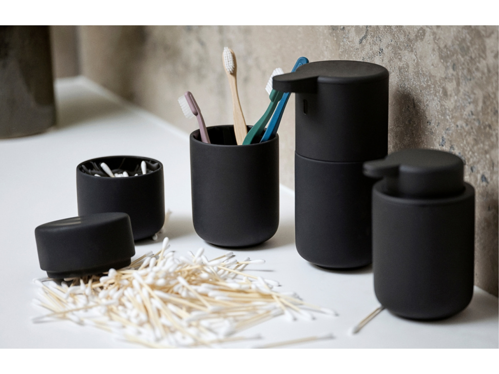Minimalistický uzavíratelný organizér Ume z kolekce dánské značky Zone Denmark vám nabídne úložný prostor pro vaše drobnosti, které zároveň ochrání před vlhkostí. Designový box se skládá ze stylového kelímku a prohloubeného víka, které můžete využít i jako praktickou misku. Potěší vás jistě také pevný a odolný materiál z matné kameniny. Koupelnový organizér s víkem můžete využít například jako zásobník na vatové tyčinky nebo odličovací tampony. Nabízíme ho v různých barevných provedeních.