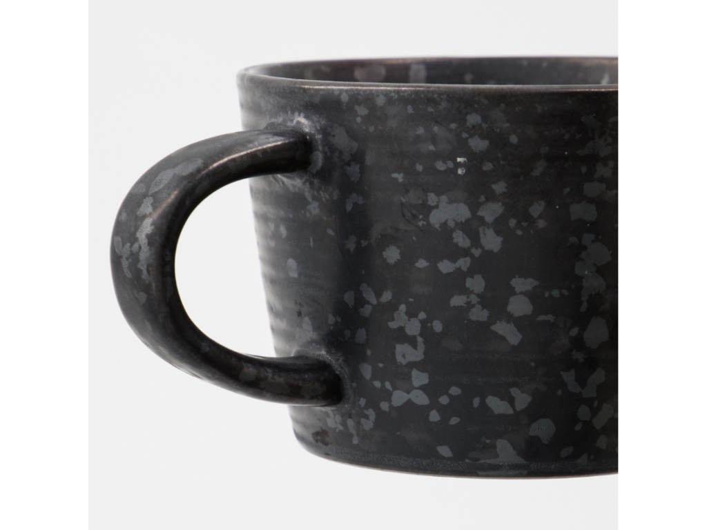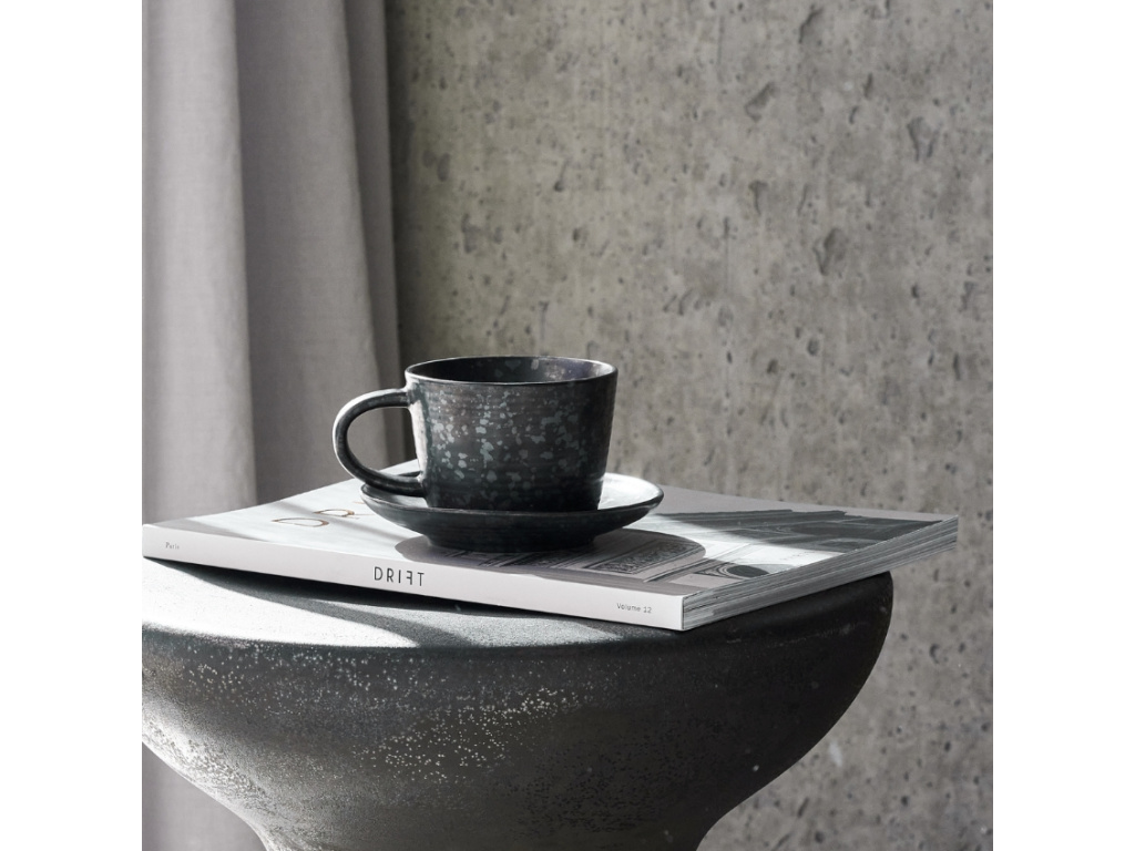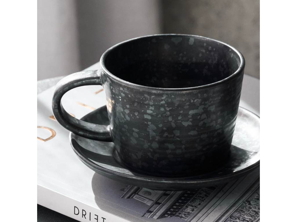 Užijte si váš oblíbený nápoj v černém šálku s podšálkem Pion od značky House Doctor. Je vyroben z odolné kameniny v matně černé glazuře s nepravidelným tečkováním, což vytváří zajímavý design vhodný pro každodenní využívání a to v jakémkoli moderním interiéru. Velké ucho usnadňuje držení šálku, zatímco podšálek nabízí praktické odkládací místo na lžičku, smetanu do kávy nebo cukr. Šálek Pion zaujme svým neformálním a nadčasovým vzhledem, který vám bude dělat radost dlouhé roky.