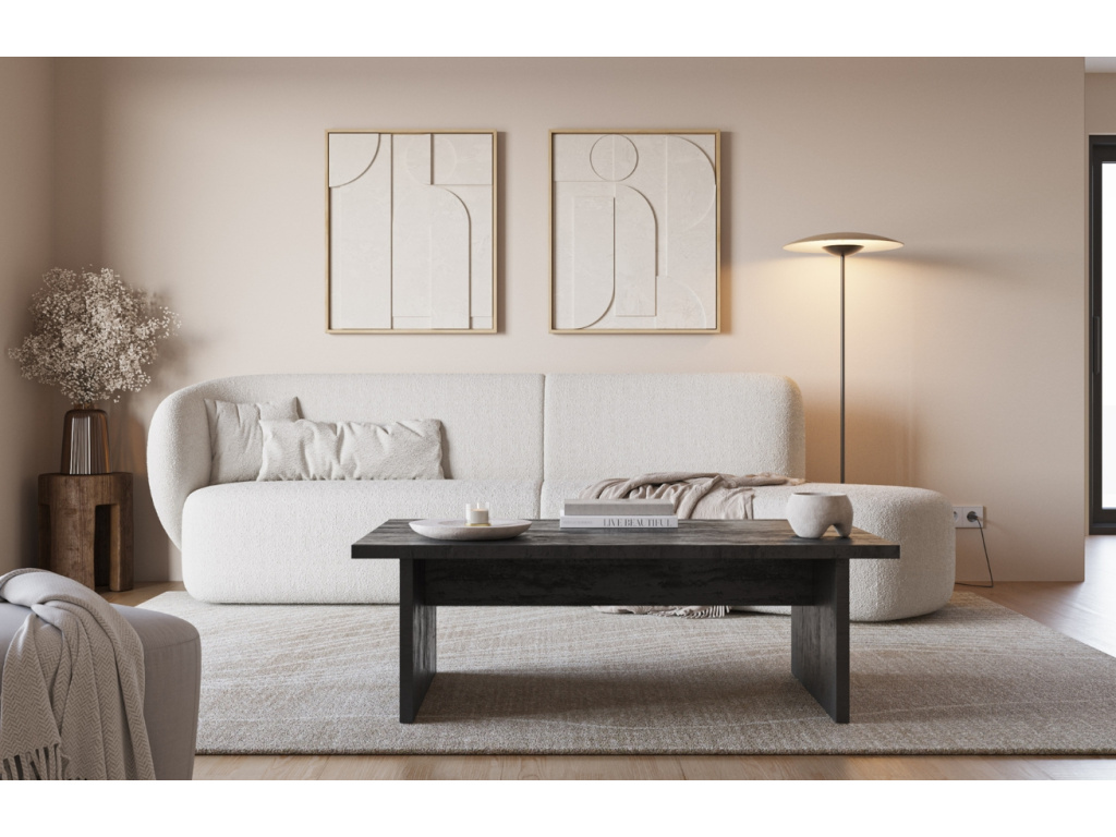 Černý konferenční stolek Loana zaujme svým minimalistickým designem a výrazným dřevěným dekorem, který interiéru dodá na osobitosti. Je vyroben z kvalitních melaminových desek a k dispozici je ve třech barevných variantách. Praktickým bonusem je možnost sladit ho se stejnou variantou jídelního stolu ze stejné kolekce. Skvěle zapadne do interiérů ve stylu japandi nebo nordic.