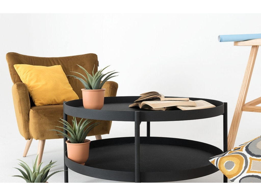 Kulatý konferenční stolek Nollan je stylovým doplňkem do každého moderně zařízeného obývacího pokoje i do komerčního prostoru – kavárny či hotelové haly. Tento designový kousek je opatřen zvýšenou hranou a také praktickým úložným prostorem v podobě spodní police.