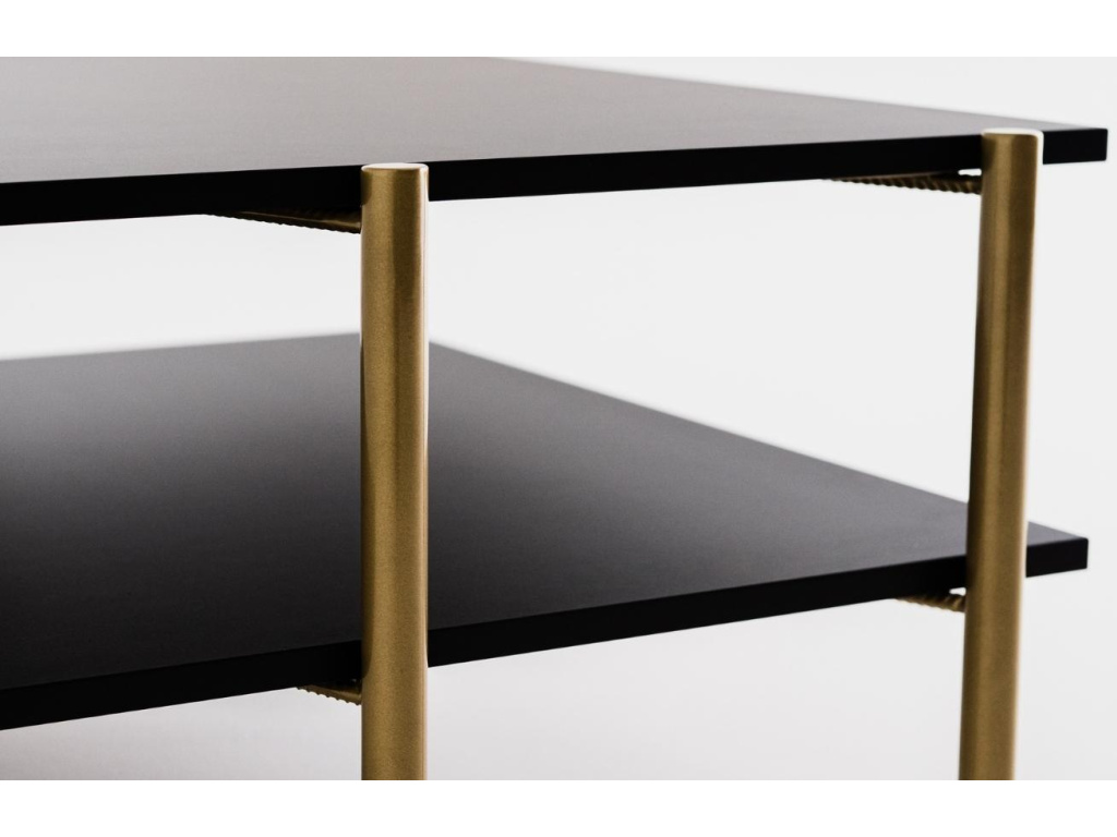 Dobře organizovaný prostor je základem pro pohodlný život. Konferenční stolek z řady Raven je ideálním pomocníkem nejen pro zpestření vašeho interiéru, ale také jako úložný prostor. Police a deska jsou vyrobené z laminátu v černém laku, které v kombinaci se zlatě lakovanou podnoží vytváří luxusní a zároveň čistý design. V řadě Raven najdete nejen konferenční stolky, ale také regály či stolky toaletní. Doporučujeme kombinaci více prvků z řady Raven. Dolaďte svůj interiér k dokonalosti.