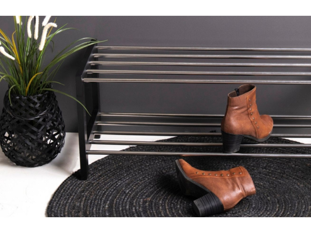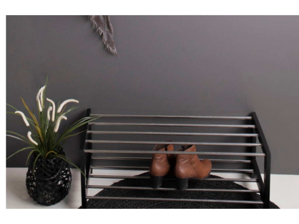 S botníkem Fintan získáte praktického pomocníka do vaší předsíně. Černá podnož z topolového dřeva ladí s kovovými policemi vytvořené z kovových tyčí. Jednoduchý, ale účelný design botníku Fintan umožňuje snadnou manipulaci a pohodlné uložení několika párů bot. Fitan zapadne zejména do moderně zařízeného interiéru.