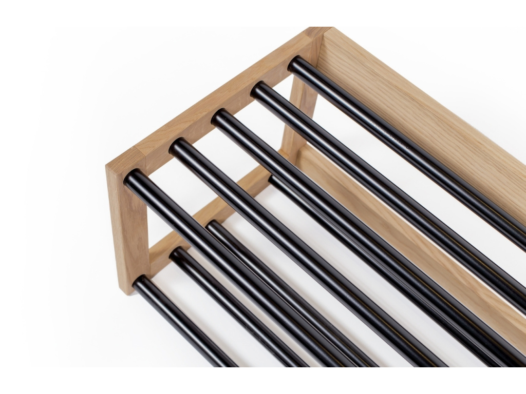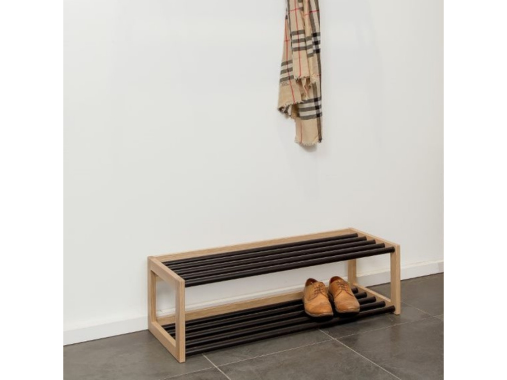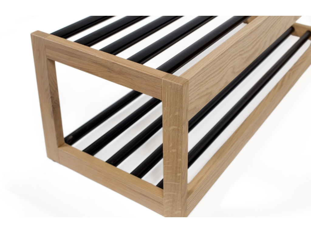 To chciČerný kovový botník Woodman Slussen s dubovým rámem 100x38 cm