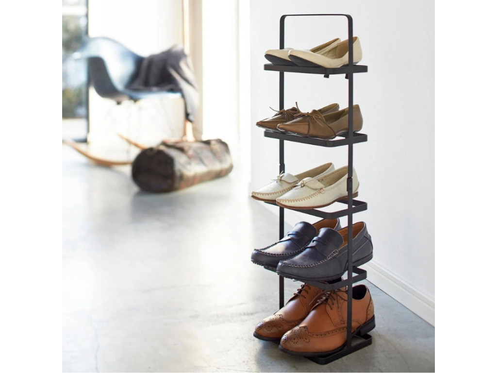 Minimalistický botník Tower od značky Yamazaki přináší do vaší předsíně elegantní a praktické řešení. Jeho jednoduchý, ale promyšlený design zajišťuje snadné uskladnění několika párů bot a umožňuje pohodlnou manipulaci. Stojan je vyroben z černě lakovaného kovu a díky své přenosnosti jej můžete snadno přesunout tam, kde ho právě potřebujete – ať už při úklidu, nebo při zkoušení různých outfitů v předsíni, ložnici či jiných prostorách. Svým moderním vzhledem skvěle zapadne do minimalistických, moderních i industriálních interiérů. K dispozici je ve dvou velikostech a barevných variantách.