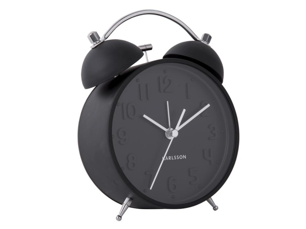 Černý retro budík Iconic v ocelovém provedení doladí váš interiér. Design je elegantně doplněn o stříbrné detaily.