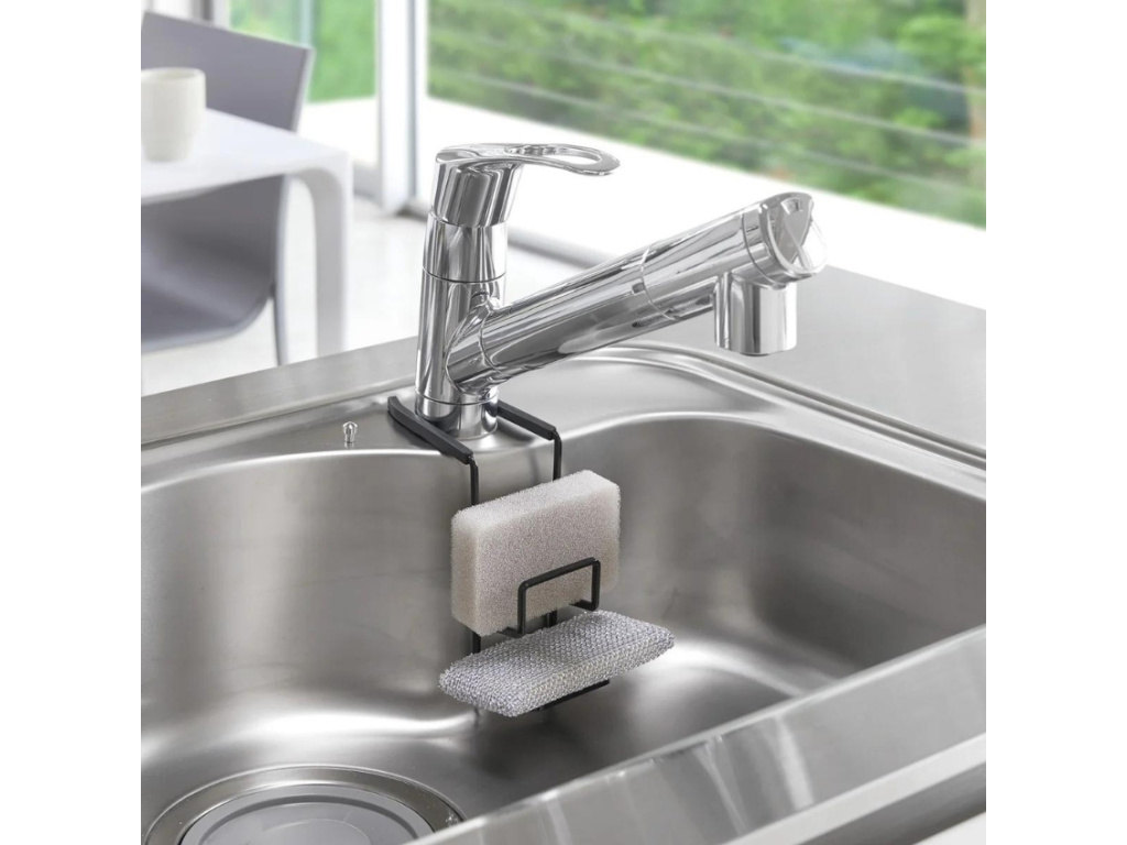 Držák na houbičku Tower je ideálním řešením pro udržení pořádku a čistoty ve vaší kuchyni. Tower je navržen k uchycení na dřezovou baterii, což umožňuje snadný přístup k mycím prostředkům. Tower je vyroben z černě lakovaného kovu a disponuje silikonovými koncovými díly, které zabraňují sklouzávání košíčku, čímž zajišťují jeho pevné a stabilní umístění. Držák je ideální pro každodenní použití v kuchyni k uložení houbiček a kartáčů.