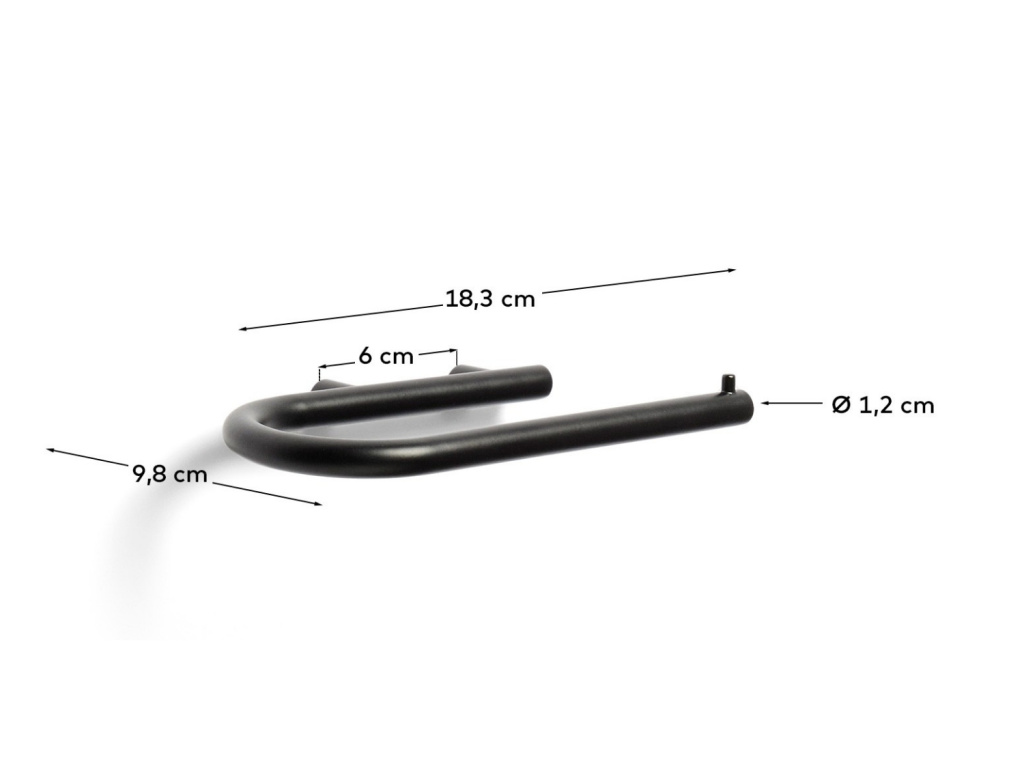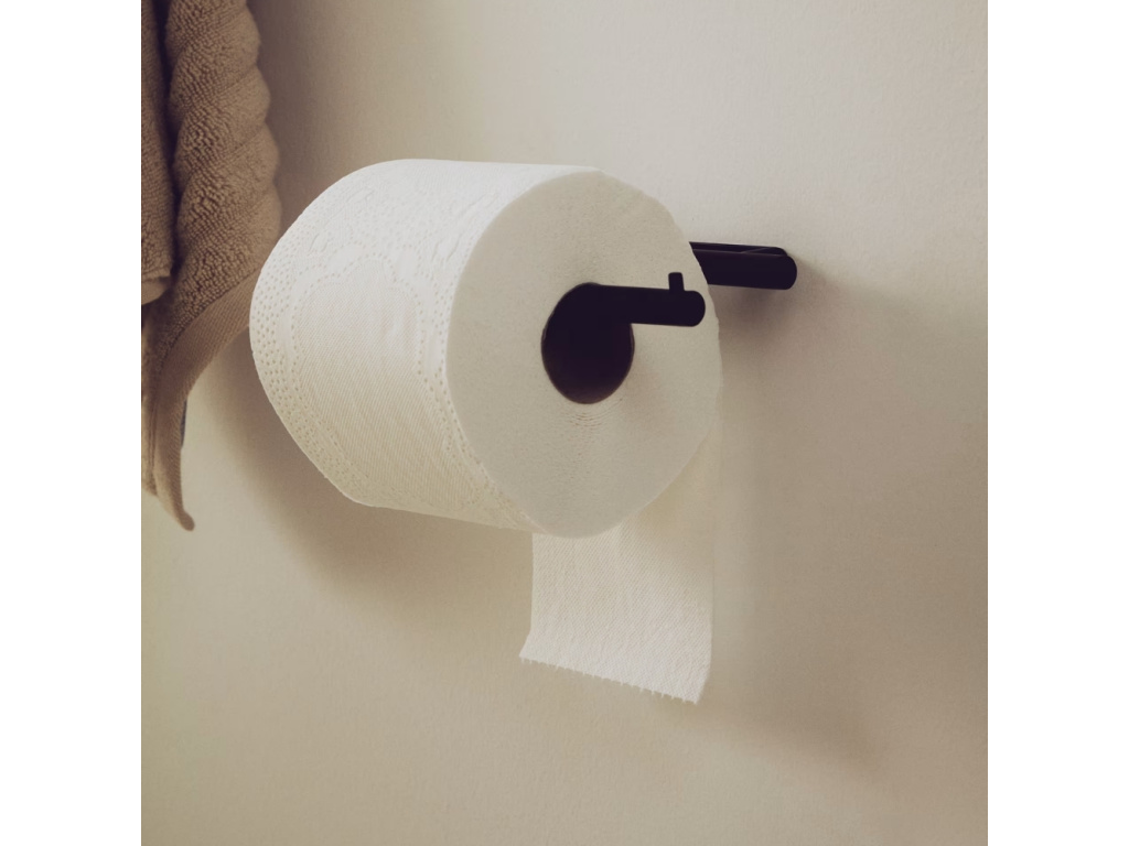 Kovový držák Arely bude praktickým a stylovým doplňkem do každé koupelny. Minimalistická konstrukce v matně černé barvě působí elegantně a zavěšení toaletního papíru je rychlé a jednoduché. Série Arely vytvořilo studio Nahtrang a nabízí více druhů držáků a jiných doplňků, takže si můžete vytvořit ucelený a sladěný set, který dodá vašemu interiéru jednotný a moderní vzhled.