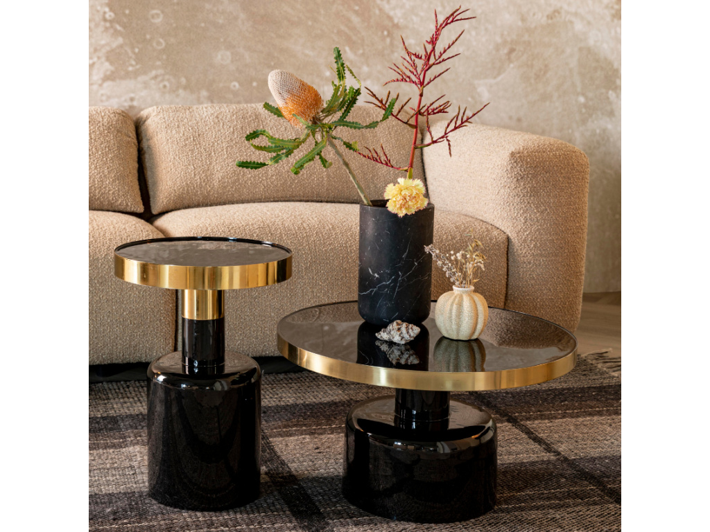 Stylový konferenční stolek ZUIVER GLAM na první pohled zaujme svým neotřelým vzhledem. Kombinace černého provedení a smaltovaného kovu působí elegantně. Jeho nadčasové prvky i použité materiály se skvěle hodí nejen do hotelových prostor, ale také do vaší domácnosti. Tento stolek totiž není jen ozdobou interiéru, ale zaujme také svojí praktičností.