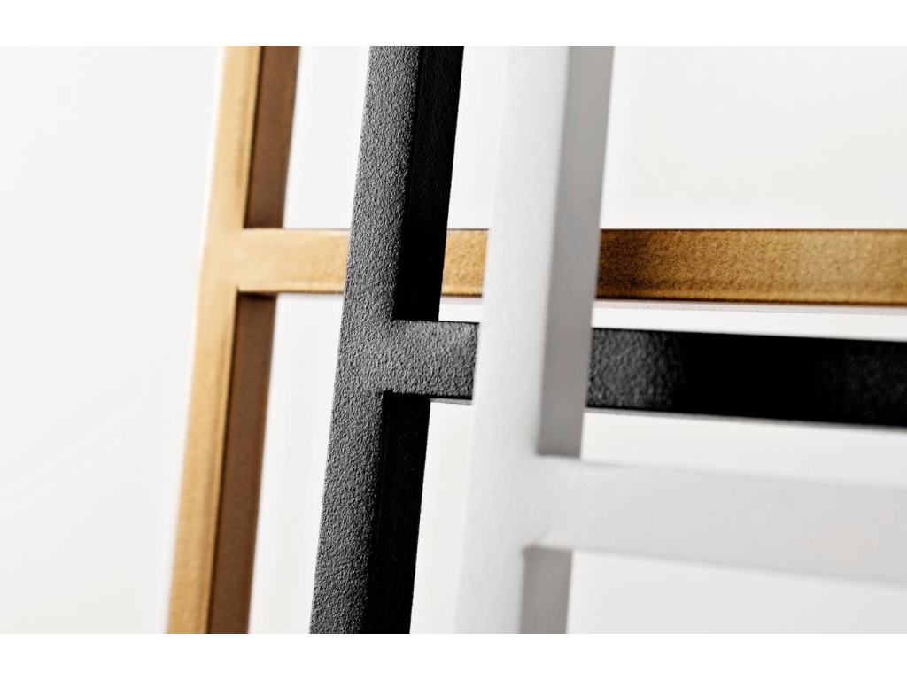 Díky zaobleným rohům a lehké, stabilní konstrukci, nemusíte mít strach opřít odkládací žebřík Reynor o zeď. Perfektní stabilitu zajišťuje pevný kovový lakovaný rám v černém provedení. Zaujme vás především jednoduchý, avšak elegantní design společně s čtyřmi, odlišně velkými, odkládacími příčkami.