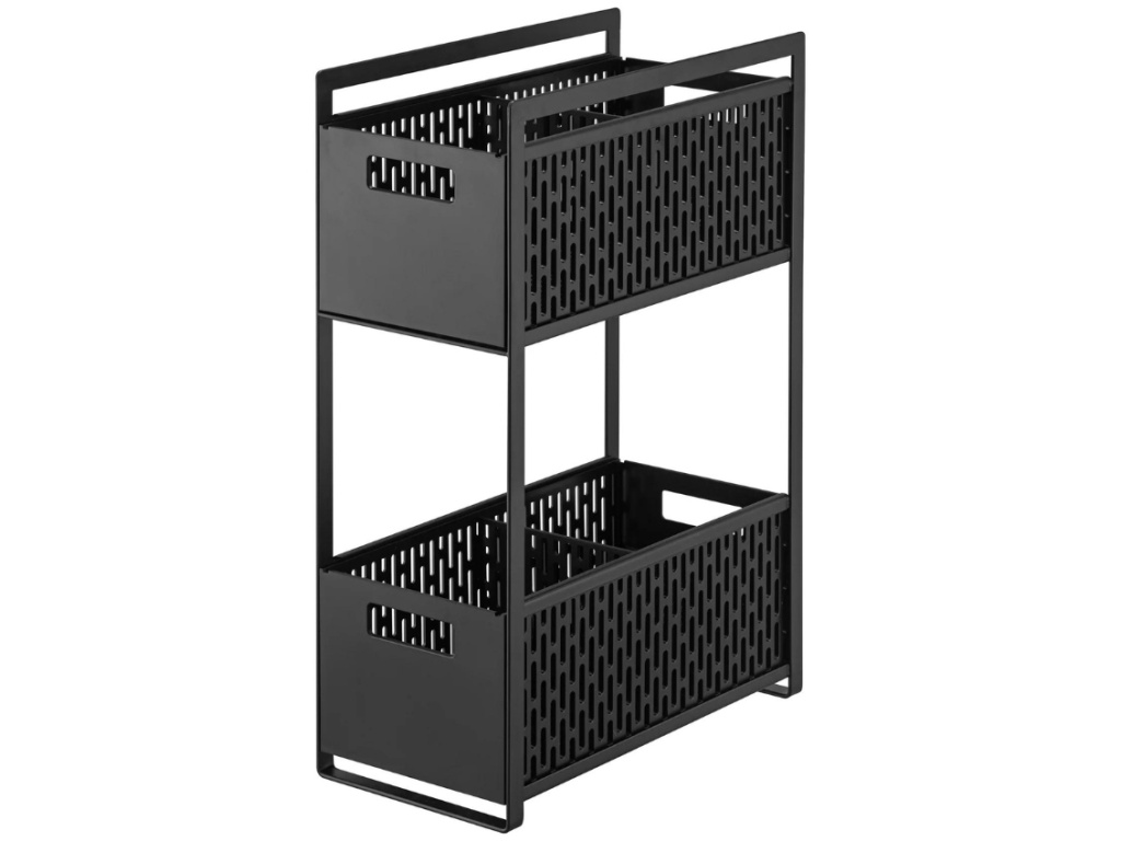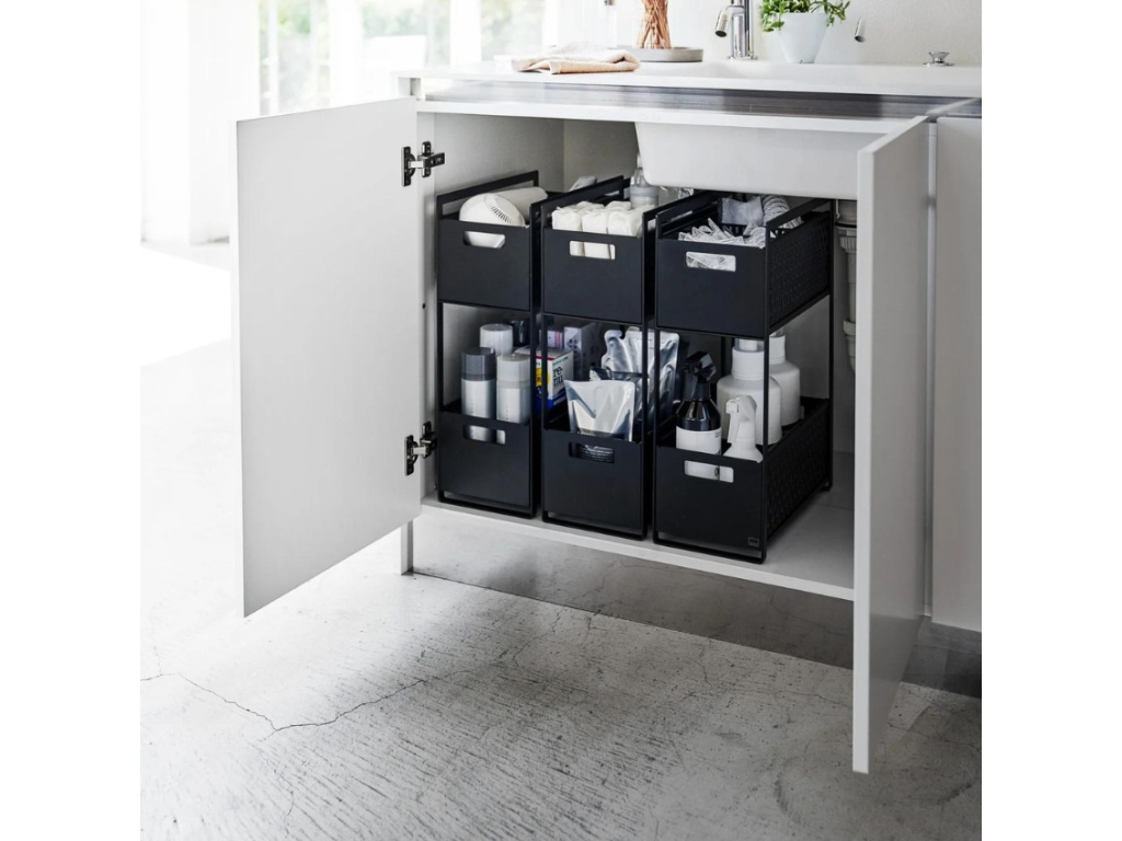 Organizér do kuchyňské skříňky Tower od značky Yamazaki je praktický a stylový doplněk, který pomáhá udržet vaši kuchyni uspořádanou a přehlednou. Organizér je vybaven košíky z ABS plastu, které jsou upevněny na nosné kovové konstrukci, která umožňuje snadnou manipulaci a přesouvání podle potřeby. Košíky poskytují dostatek prostoru pro uložení různých kuchyňských potřeb, jako jsou kořenky, oleje, balení potravin nebo čisticí prostředky. Tower umožňuje efektivní využití prostoru ve skříňce, čímž usnadňuje přístup k uloženým věcem a zajišťuje, že vše je na svém místě.