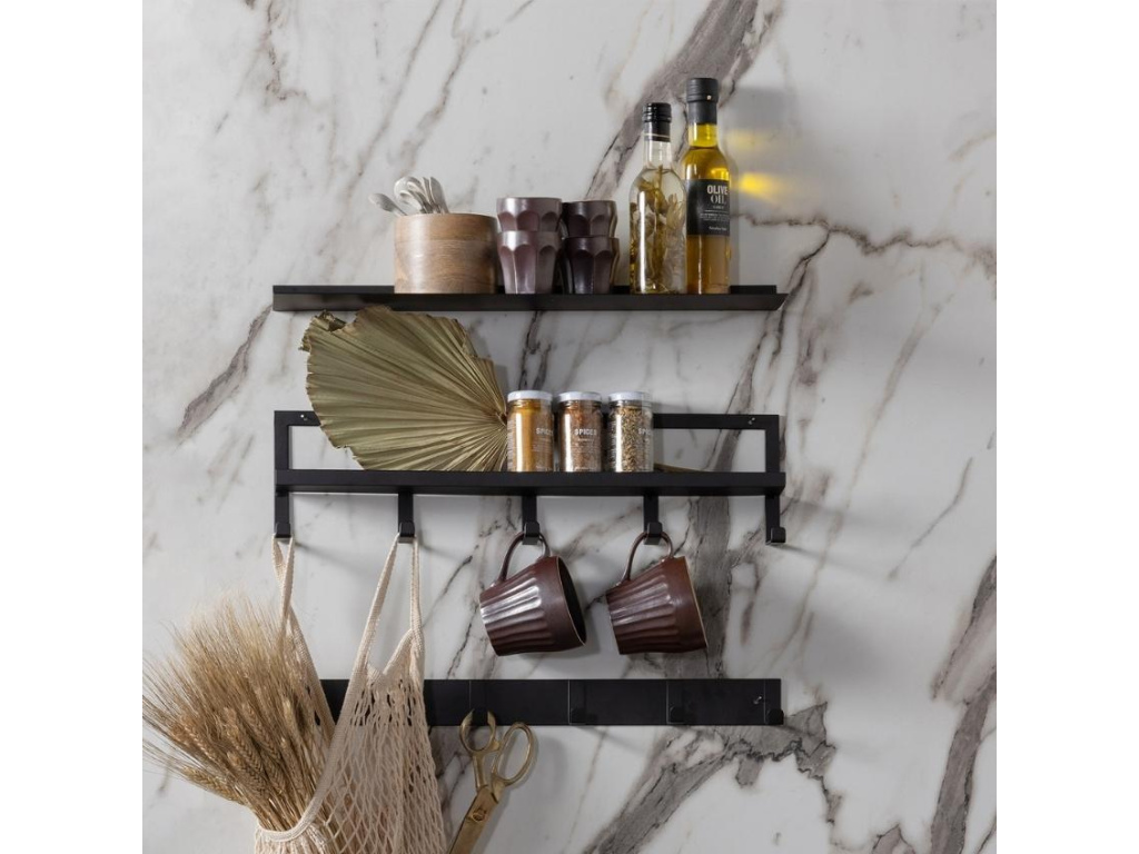 Nástěnný věšák Cheyanne je velmi praktický a je vytvořen v jednoduchém a elegantním designu. Je vyroben z kovu lakovaným černou barvou a k dispozici má pět háčků, kromě kterých můžete využít také menší poličku. Vzhledem k jeho černé barvě se hodí prakticky do každého interiéru.