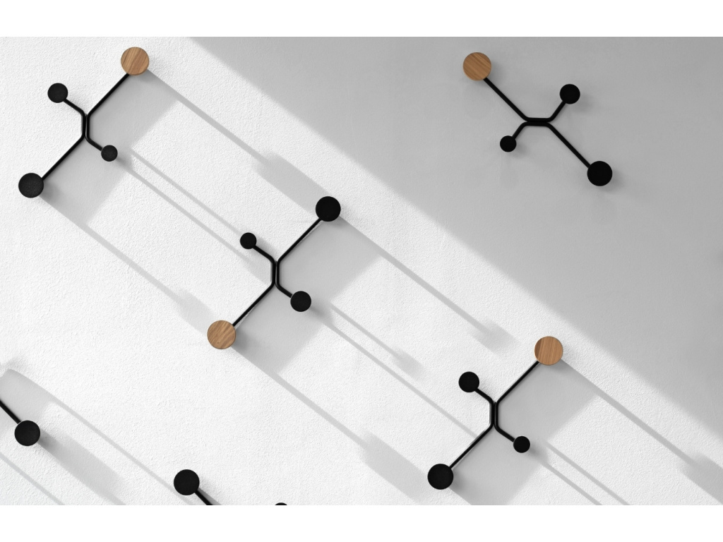 Hook je víc než jen nástěnný věšák – je to grafické umění, které vdechne život vašim stěnám v domácnostech i komerčních prostorech. Je vyroben z černě lakovaného kovu a disponuje čtyřmi háčky na zavěšení svrchních oděvů, šál či tašek. Věšák je nejen praktickým, ale i dekorativním kouskem. Oživte s ním chodby, předsíně nebo šatny!