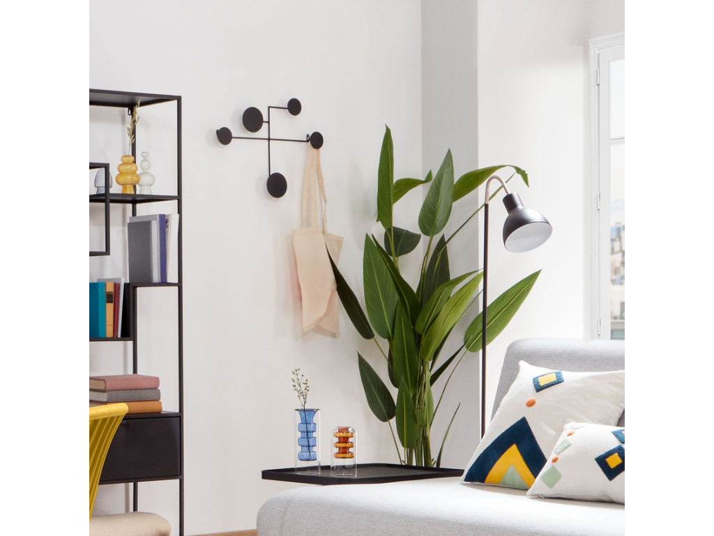 Stylový nástěnný věšák Kave Home Vianela bude nádhernou ozdobou každé moderní chodby či předsíně. Věšák je vyrobený z černě lakovaného kovu a může být pověšen dvěma způsoby - horizontálně i vertikálně. Věšák se hodí do moderních interiérů s nádechem industriálního stylu.