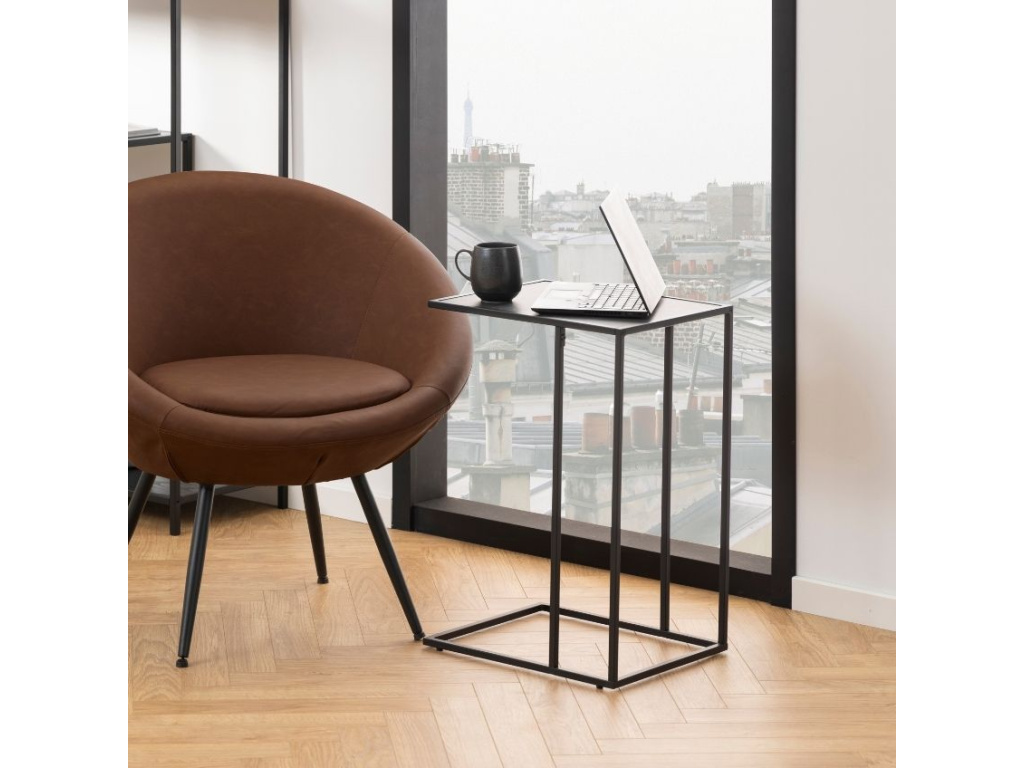 Rowan je odkládací stolek černé barvy. Jeho deska je z pevného laminátu, který má dekor mramoru a je doplněná kovovou podnoží. Ta je po stranách zpevněná, což zaručuje maximální stabilitu stolu.