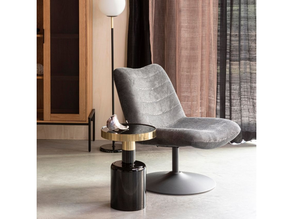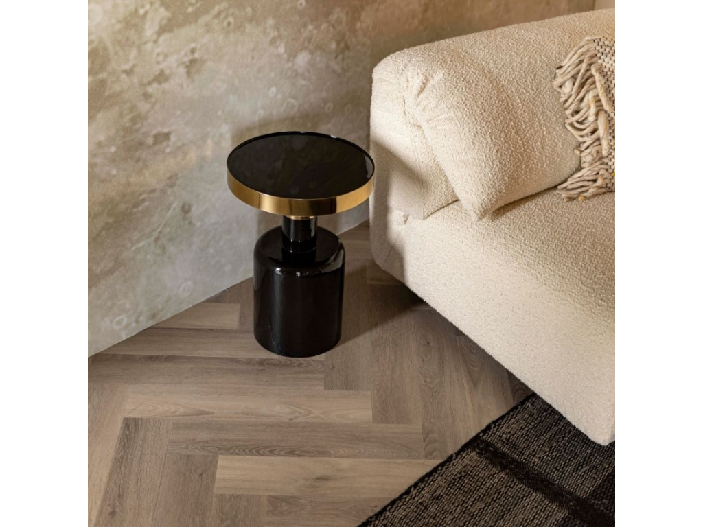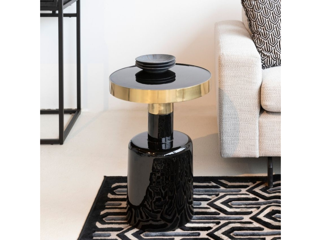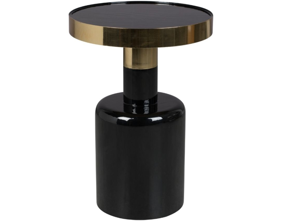 Odkládací stolek ZUIVER GLAM v černém provedení je skvělým doplňkem do vašeho interiéru. Díky smaltované oceli, kovovému základu a zlatavým doplňkům vytváří příjemnou kombinaci, která se skvěle hodí nejen do moderních interiérů.