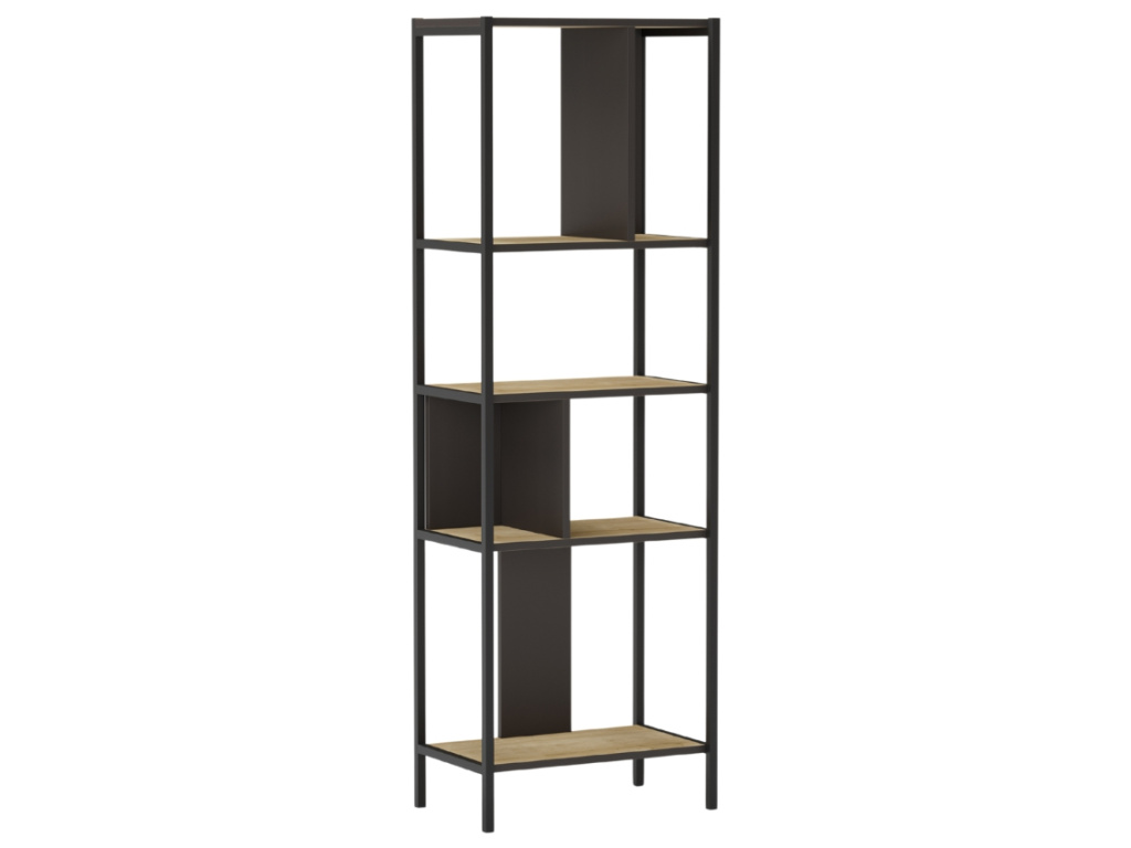 Regál Alabama od značky Marckeric zaujme moderní kombinací matně lakovaného kovu a melaminových desek v dekoru dubu. Jeho geometrické členění vytváří dynamický a praktický úložný prostor pro knihy, dekorace i rostliny. Skvěle vynikne v obývacím pokoji, domácí pracovně nebo třeba v předsíni jako stylový organizér. Na výběr je ve třech velikostech, takže snadno zapadne do různě velkých interiérů.